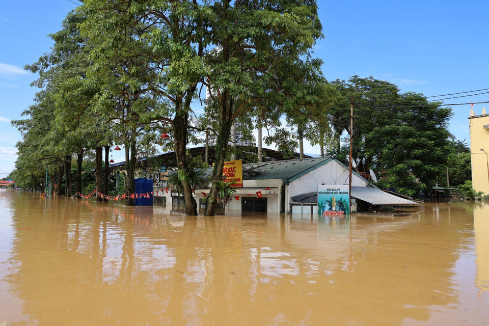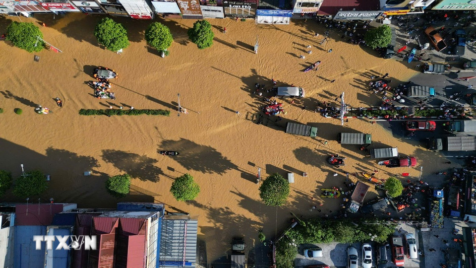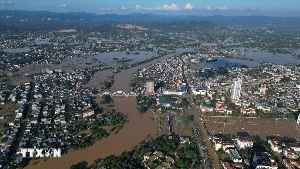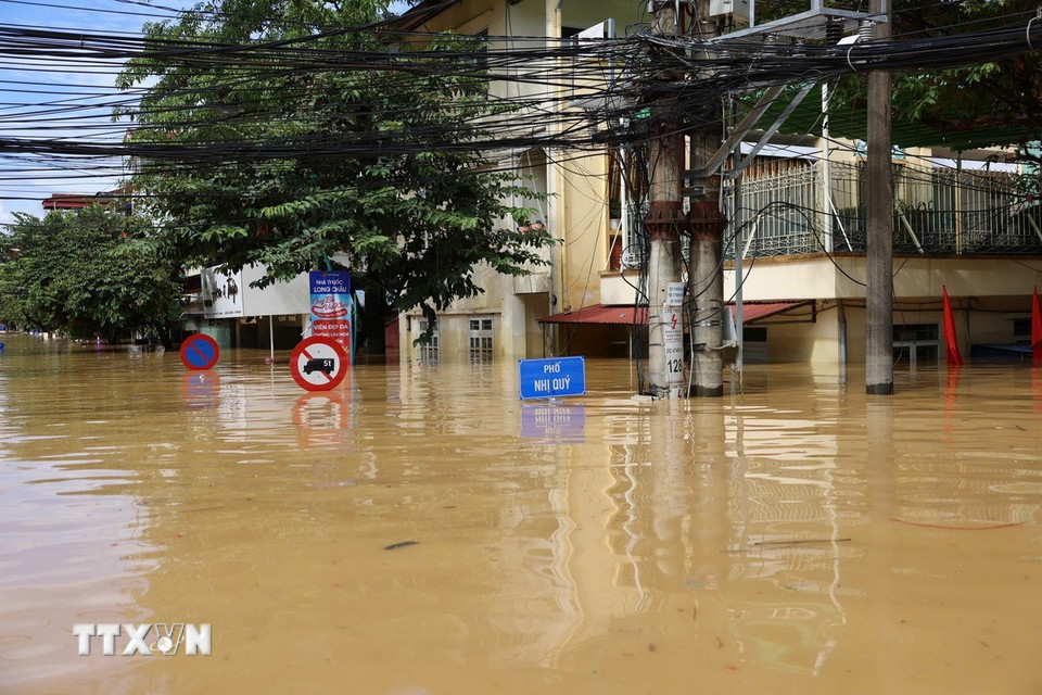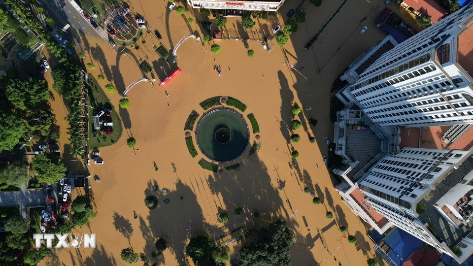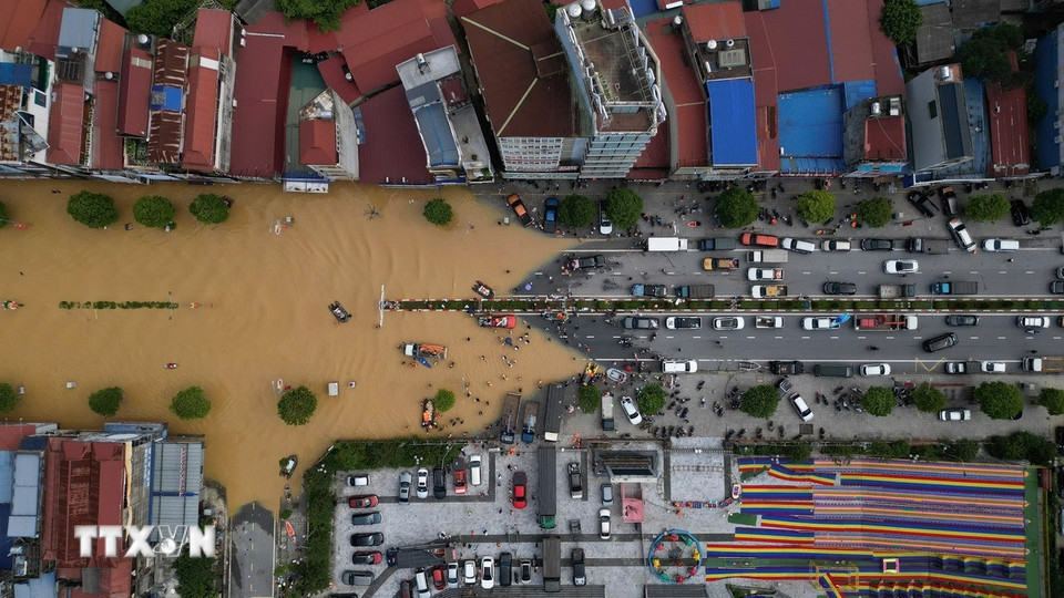 Khu vực trung tâm của tỉnh Thái Nguyên ngập sâu trong nước lũ. (Ảnh: Phạm Tuấn Anh/TTXVN)