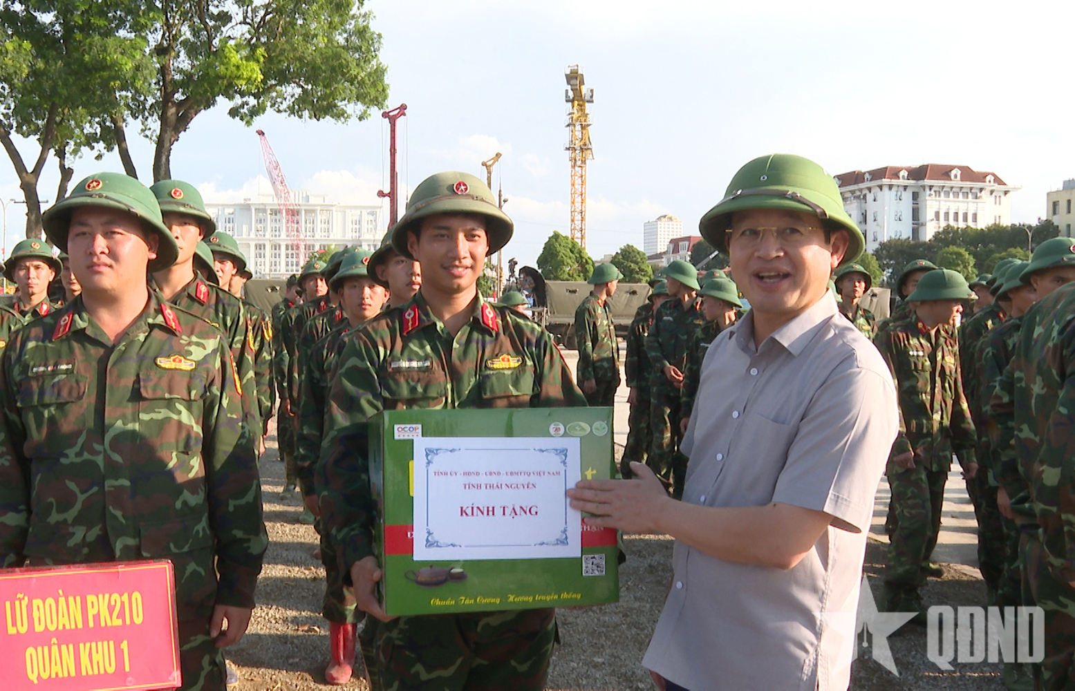 Lãnh đạo tỉnh Thái Nguyên trao quà tặng các đơn vị Quân đội.