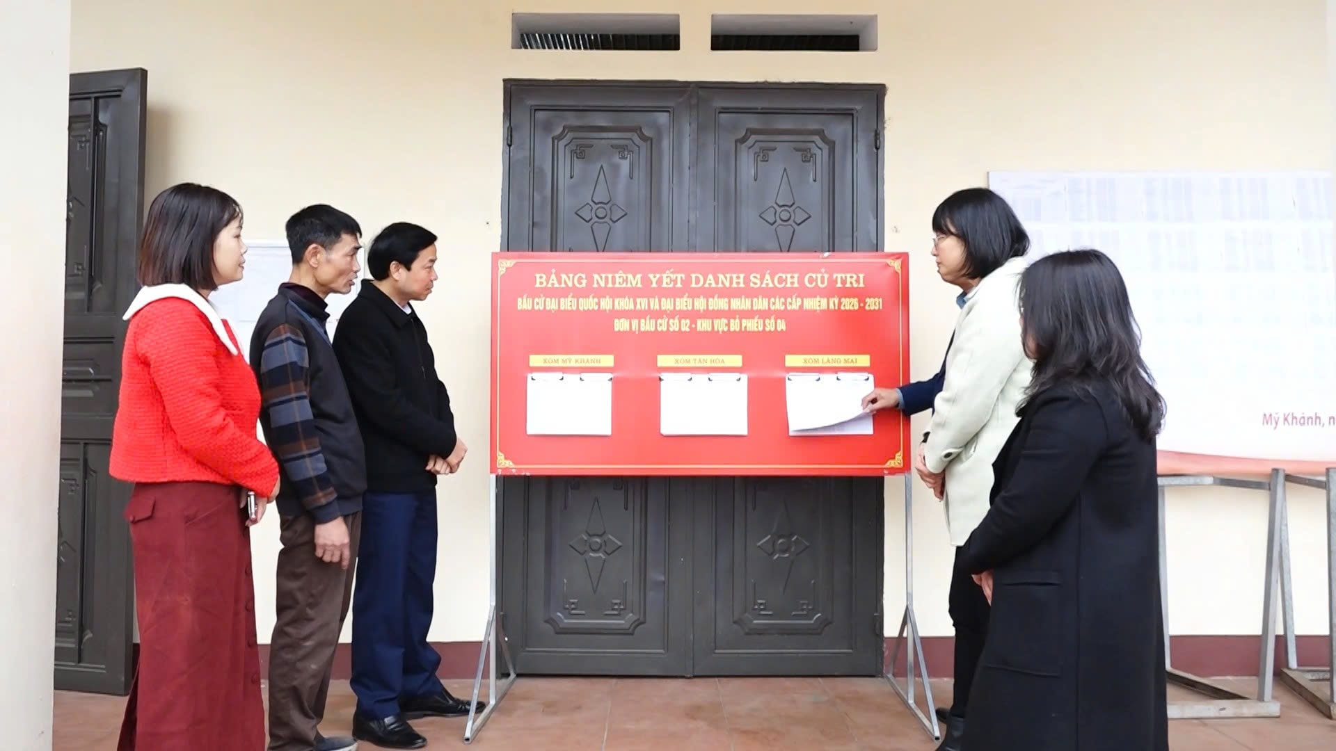 Đoàn công tác kiểm tra khu vực niêm yết danh sách cử tri tham gia bầu cử