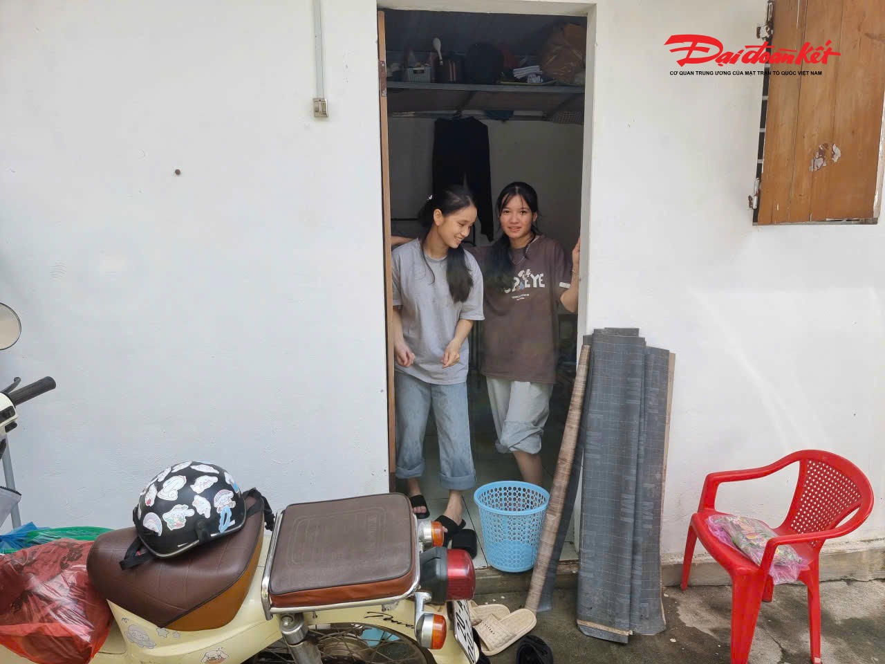 Em Lâm Thị Trầm Hương và bạn ở cùng quay trở lại phòng trọ vào sáng 2/10. Ảnh: Toán Nguyễn