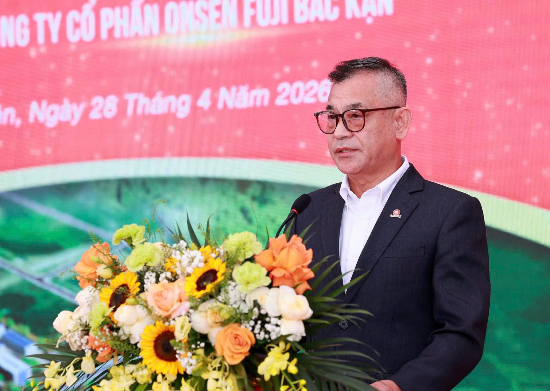 Chủ tịch Hội đồng quản trị Tomita Takahisa, đại diện Công ty Cổ phần tập đoàn Onsen Fuji phát biểu tại lễ khởi công.