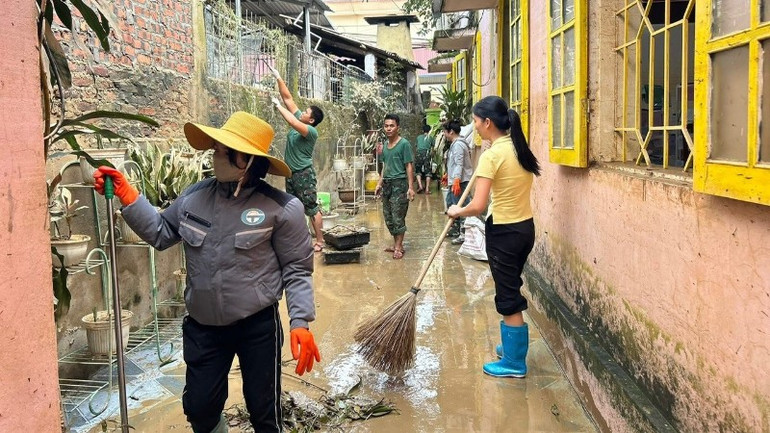 Ngập úng tại khu vực trung tâm gây nhiều thiệt hại cho nhân dân. (Trong ảnh: Người dân khu vực trung tâm tỉnh Thái Nguyên dọn vệ sinh sau đợt ngập nặng đầu tháng 10 vừa qua. (Ảnh: TUẤN SƠN).