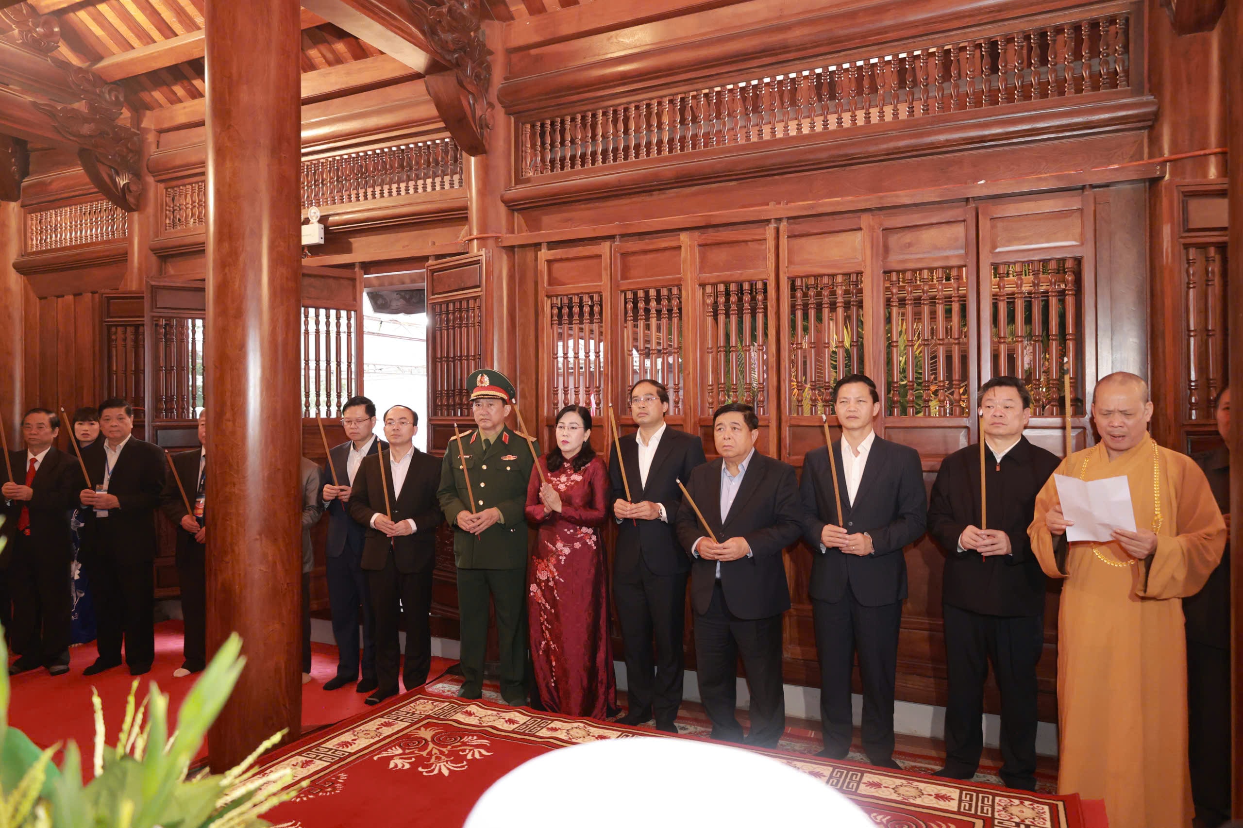 Phó Thủ tướng Chính phủ Nguyễn Chí Dũng và các đại biểu dâng hương tại Đền thờ Lý Nam Đế.