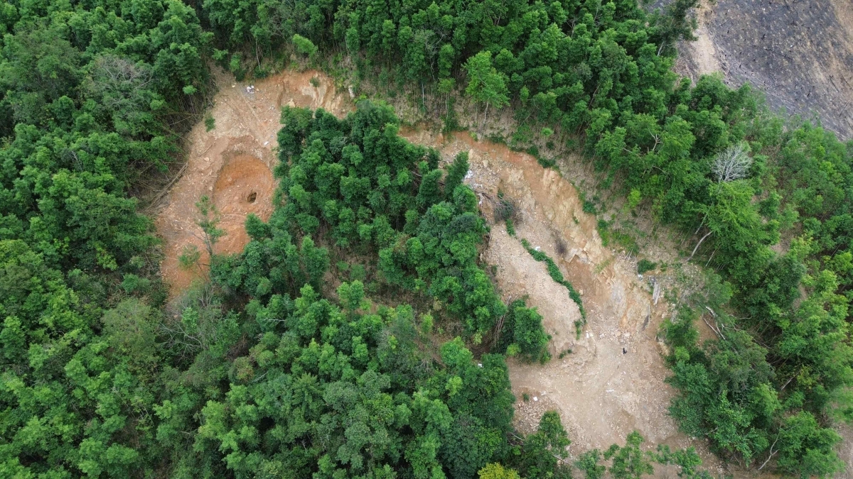 Ghi nhận tại hiện trường, nhiều diện tích rừng tự nhiên bị san gạt, đào bới với vết đất còn mới, xuất hiện một số hang sâu không xác định được đáy. Dấu vết máy xúc cùng nhiều tảng đá lớn bị đập vỡ cho thấy hoạt động khai thác khoáng sản trái phép tại đây đã diễn ra trong thời gian khá dài, quy mô không nhỏ.