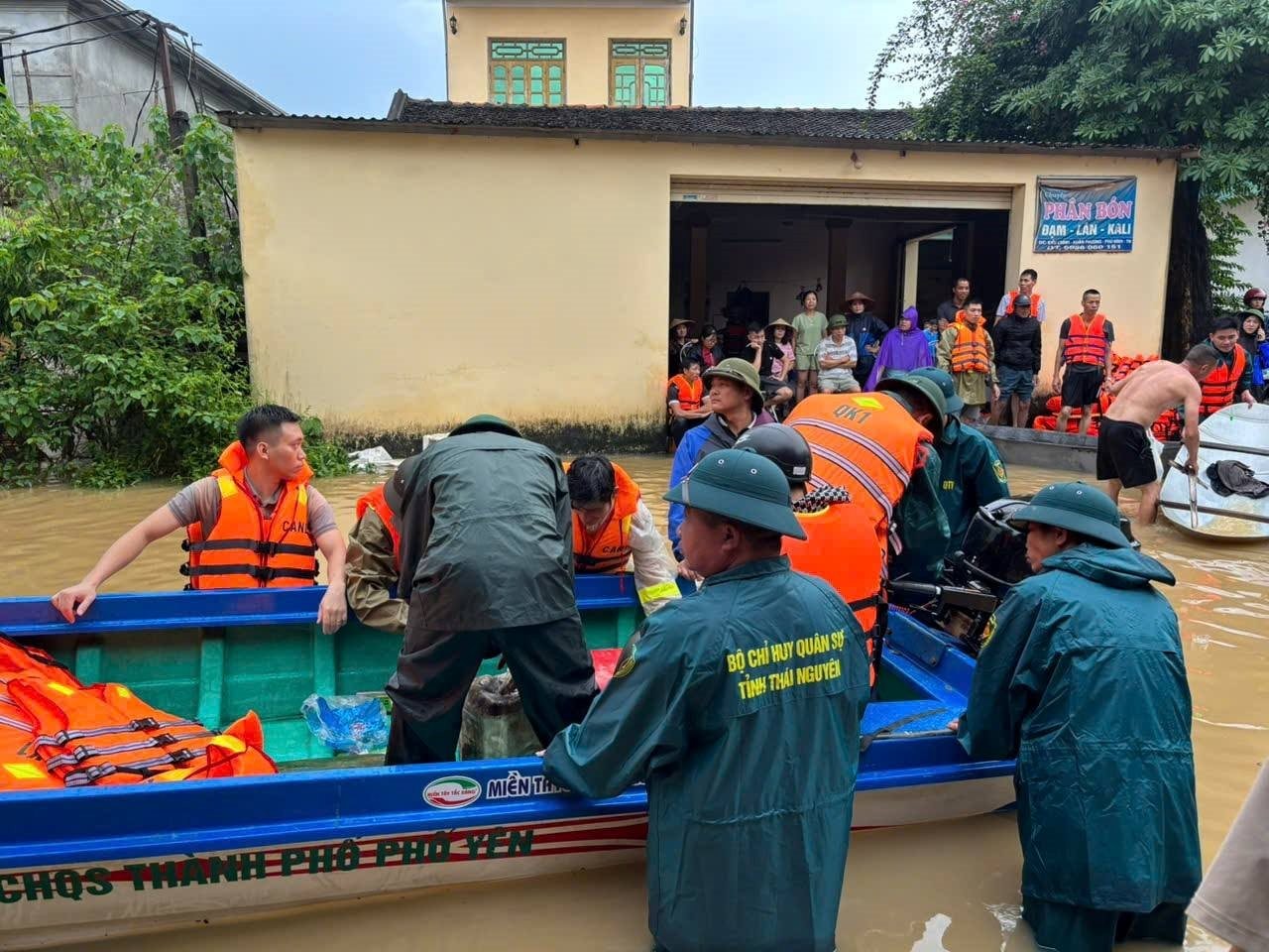 Các chiến sĩ và lực lượng của các xã, phường sơ tán người dân đến nơi an toàn.