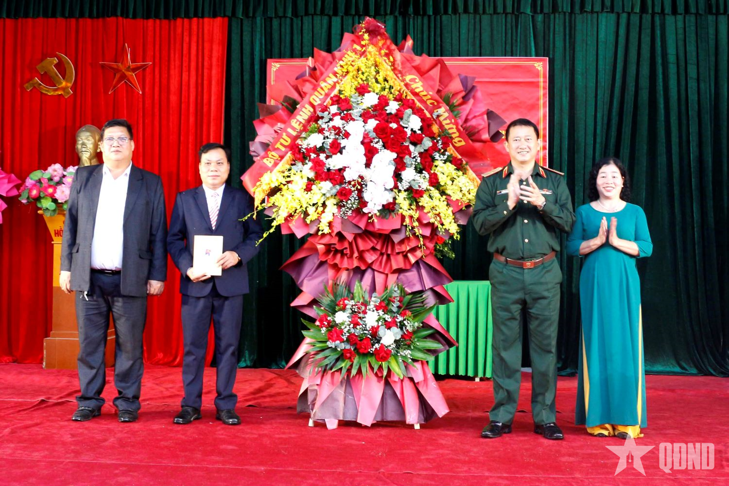 Thiếu tướng La Công Phương trao lẵng hoa tặng nhà trường.