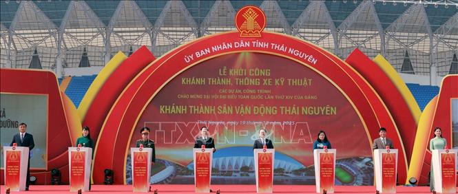 Cũng trong sáng nay, tỉnh Thái Nguyên đã khánh thành Dự án xây dựng Sân vận động tỉnh Thái Nguyên với quy mô 22.000 chỗ ngồi, diện tích 15,47 ha, tổng mức đầu tư gần 536 tỷ đồng; đầu tư đồng bộ, hiện đại, đáp ứng tiêu chuẩn tổ chức các giải đấu, sự kiện văn hóa - thể thao quy mô lớn của tỉnh và khu vực. Khi đi vào hoạt động, Sân vận động Thái Nguyên sẽ góp phần nâng cao chất lượng cơ sở vật chất phục vụ hoạt động thể dục, thể thao, đáp ứng yêu cầu tổ chức các sự kiện văn hóa - thể thao quy mô lớn của tỉnh và khu vực; đồng thời tạo điểm nhấn kiến trúc, không gian sinh hoạt cộng đồng, phục vụ nhu cầu rèn luyện sức khỏe và hưởng thụ văn hóa tinh thần của nhân dân.