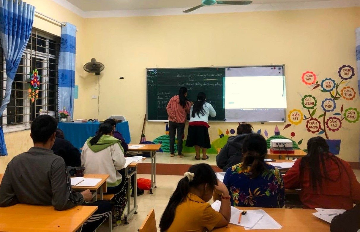 Lớp học xóa mù chữ cho bà con dân tộc Mông ở bản Làng Ươm và xóm Lân Vai, xã Dân Tiến.