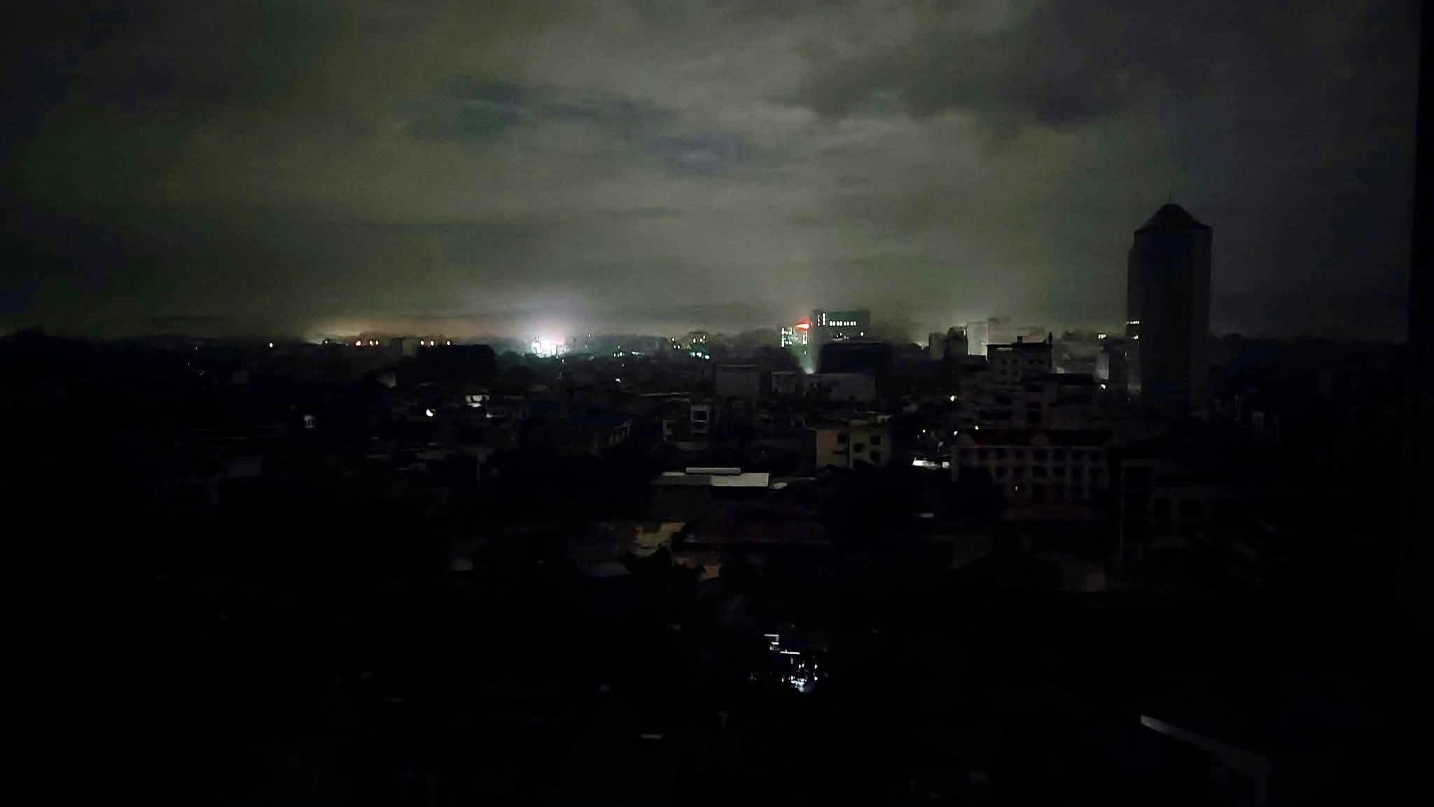 Thành phố Thái Nguyên chìm trong bóng tối do mất điện. Ảnh: MXH