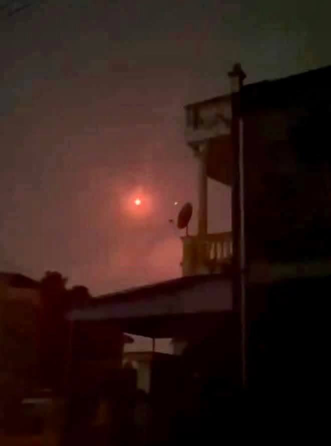 Hình ảnh pháo sáng S.O.S cầu cứu được bắn lên trong đêm tối, người dân tuyệt vọng khi bị cô lập trong lũ. Ảnh: MXH