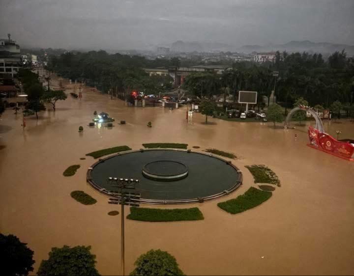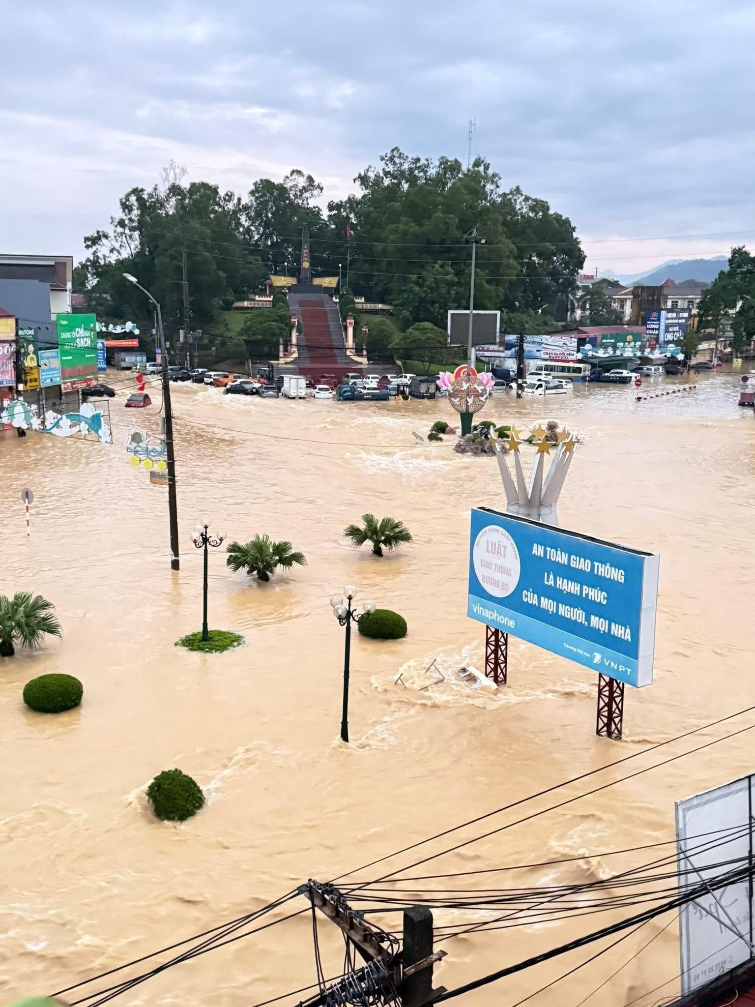 Thành phố Thái Nguyên nhiều nơi vẫn chìm trong biển nước, có nơi ngập hàng mét. Ảnh: MXH
