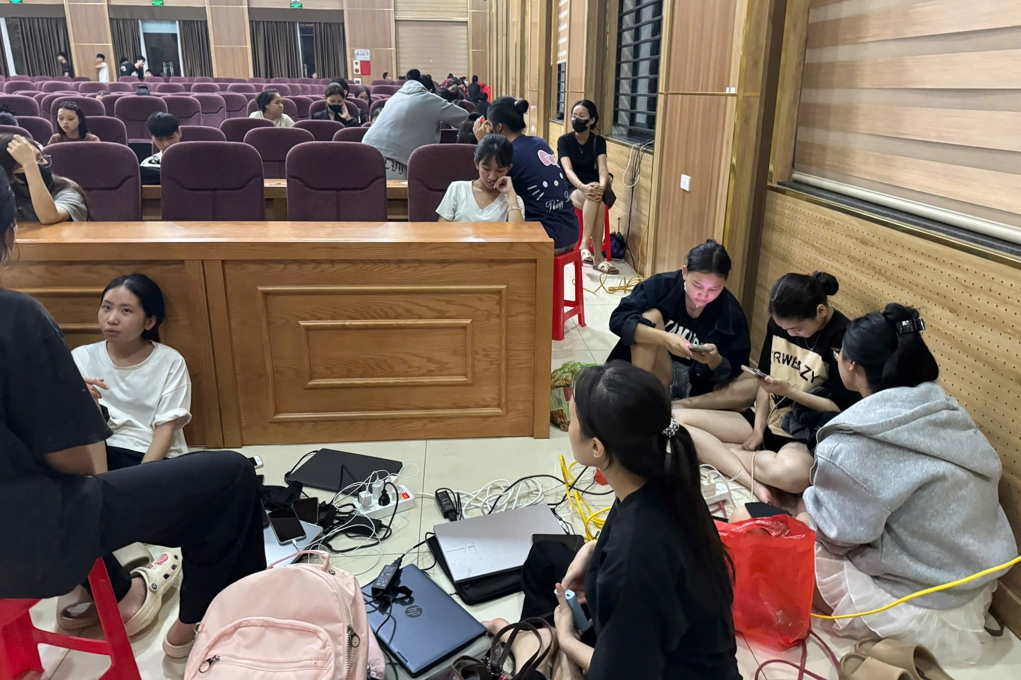 Nhiều em sinh viên hiện không thể liên lạc được do điện thoại đã hết pin và không có sóng. Các em ở trong khu nội trú (ký túc xá) sẽ ít bị ảnh hưởng hơn so với các em trọ ngoài.