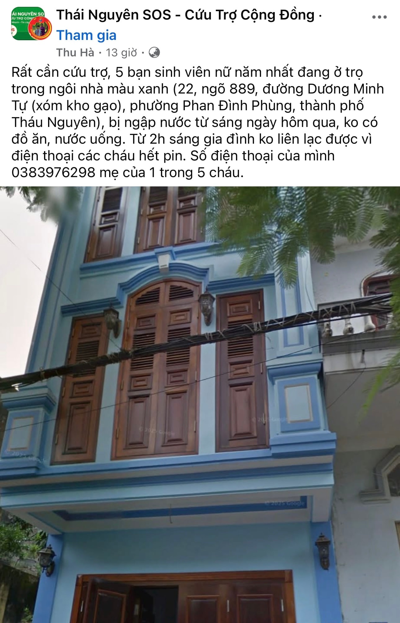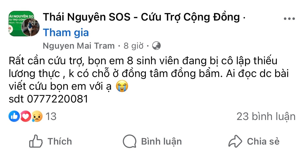 Ảnh: FB Thái Nguyên SOS - Cứu Trợ Cộng Đồng