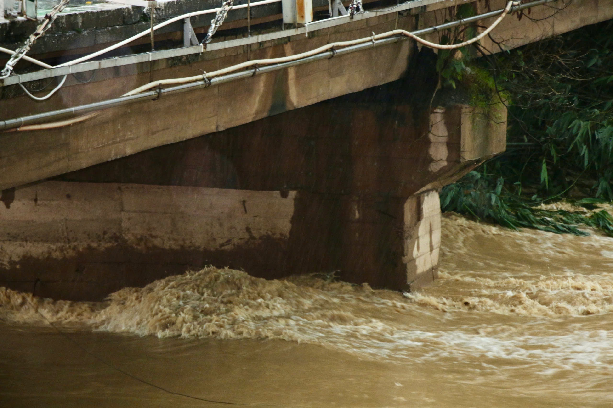 Nước lũ chảy siết, có khả năng gây hư hỏng các mố cầu.