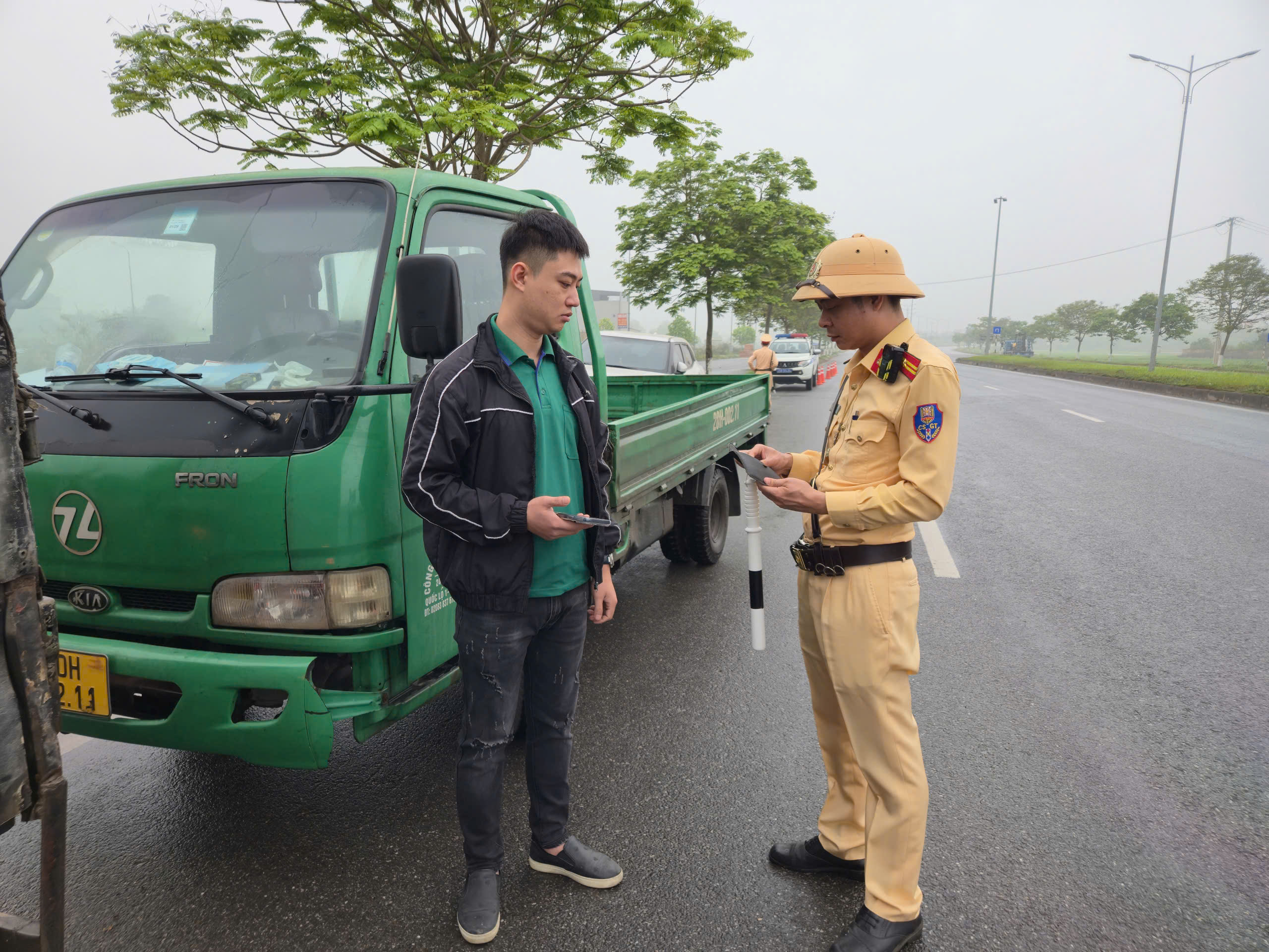 Lực lượng chức năng tăng cường kiểm tra việc chấp hành an toàn giao thông tại phường Vạn Xuân và TP Phổ Yên.