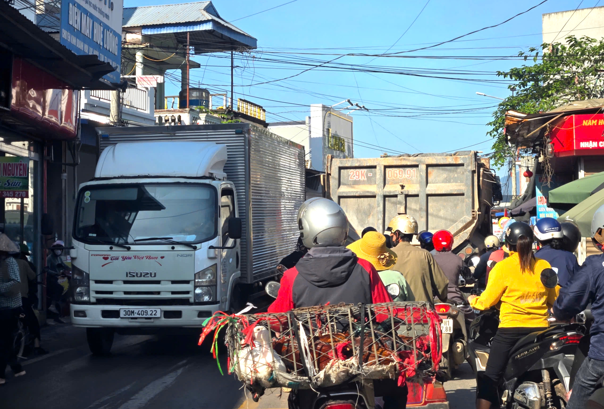 Đường hẹp, phương tiện giao thông tăng nhanh khiến tình trạng ùn tắc diễn ra thường xuyên.