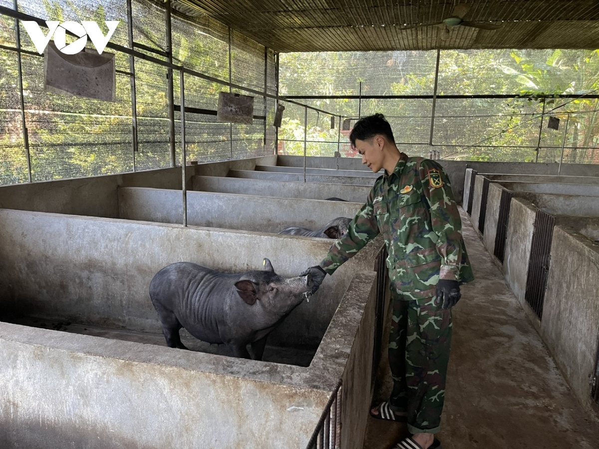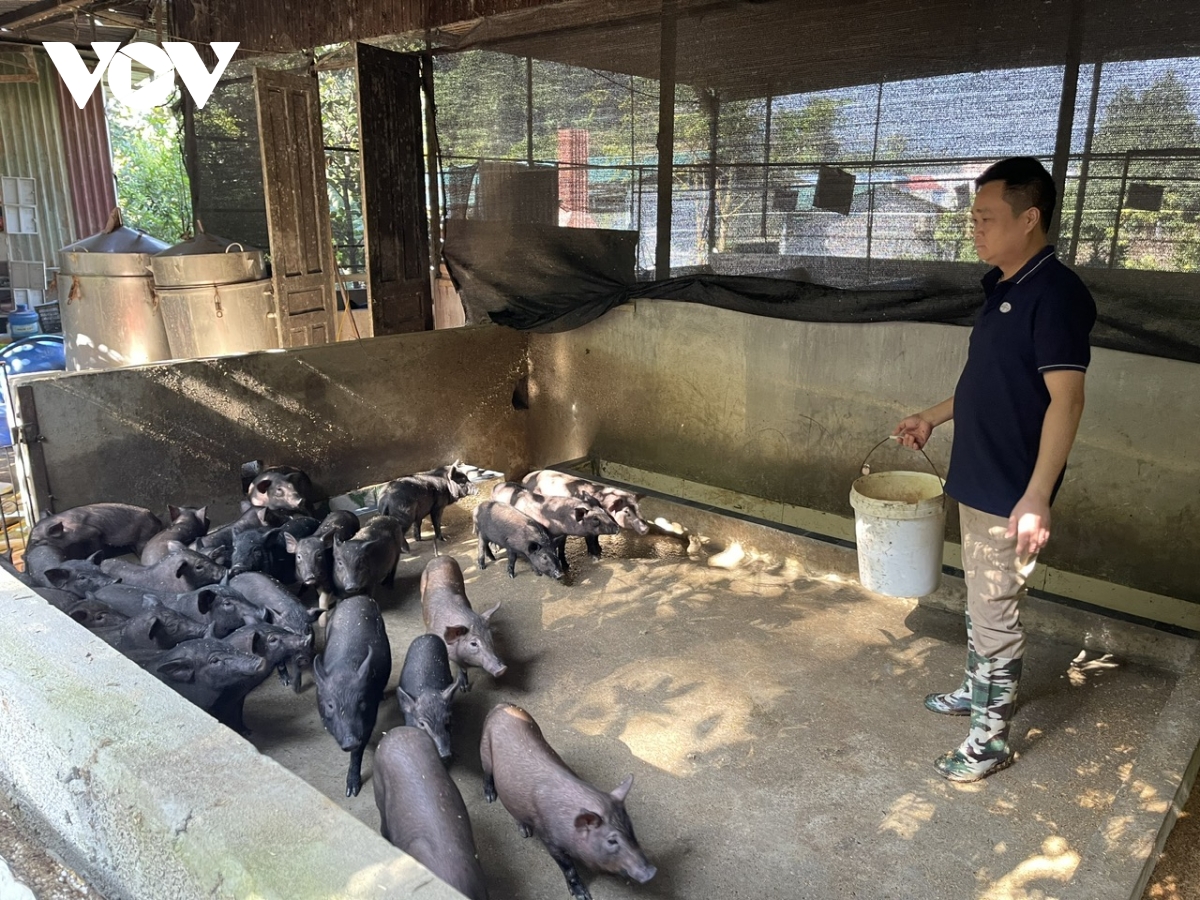 “Hiện nay, gia đình tôi tập trung chăn nuôi lợn đen để phục vụ thị trường Tết. Chúng tôi áp dụng mô hình chăn nuôi an toàn sinh học, tận dụng các sản phẩm bản địa như bỗng rượu kết hợp với các loại men thảo dược. Đồng thời sử dụng phương pháp IMO, tức vi sinh ngâm với tỏi và nghệ, giúp vật nuôi khỏe mạnh và tăng sức đề kháng. Gia đình cũng dùng nước vôi trong để phun khử trùng, góp phần ức chế các loại vi rút, đặc biệt là vi rút dịch tả lợn châu Phi”, anh Hồng nói.
