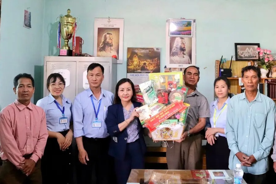 Đoàn công tác do đồng chí Giáp Thị Thủy làm trưởng đoàn thăm hỏi, động viên các cơ sở tôn giáo trên địa bàn