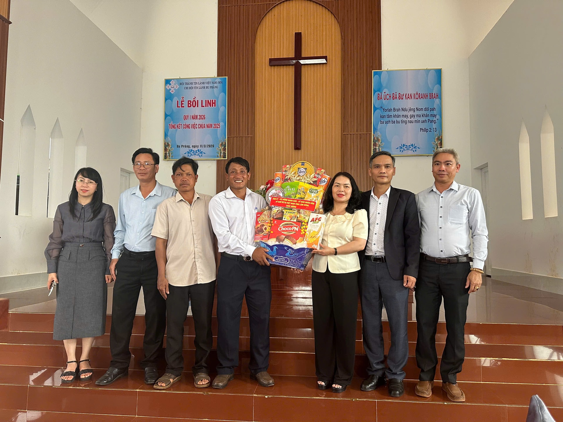 Phó Chủ tịch UBMT Tổ quốc Việt Nam tỉnh Đỗ Thị Quế Phương chúc mừng Lễ Phục sinh năm 2026 tại Chi hội Tin lành Bu Đăk, xã Thuận An