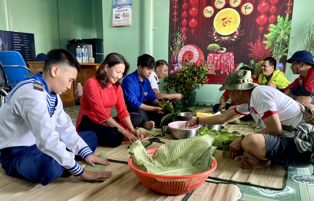 Trong không khí đầm ấm những ngày giáp Tết, đoàn công tác cùng cán bộ, chiến sĩ các Nhà giàn gói bánh chưng, ăn cơm tất niên, giao lưu văn nghệ, tặng quà đầu xuân. Những hoạt động ý nghĩa này đã mang hương vị Tết từ đất liền ra biển khơi, góp phần động viên tinh thần, thắt chặt tình cảm quân - dân nơi đầu sóng ngọn gió.
