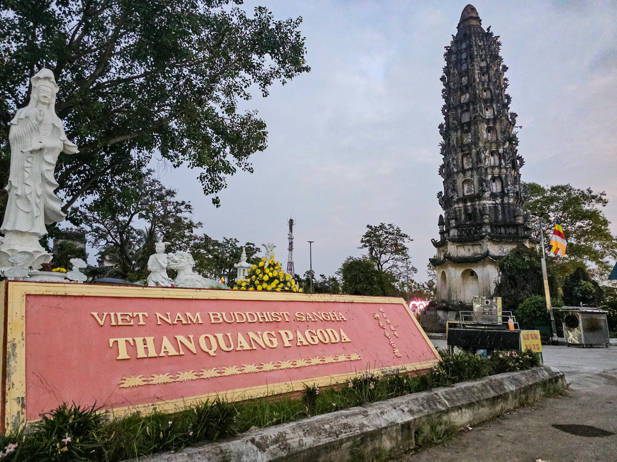 Ngoài ra, chùa còn lưu giữ nhiều hiện vật quý, trong đó nổi bật là quả chuông Đại Hồng Chung nặng khoảng 9 tấn, cao 4,2 m, đường kính 2,2 m, được đúc năm 1936. Thân chuông khắc chữ Hán và hoa văn cánh sen, hoa lá. Trong thời kỳ kháng chiến, chuông từng được hạ xuống hồ trước chùa để bảo quản, đến năm 1954 mới được đưa lên đặt giữa hồ như hiện nay. Quả chuông này được ghi nhận là một trong những chuông lớn nhất Việt Nam. Ảnh: Đình Minh