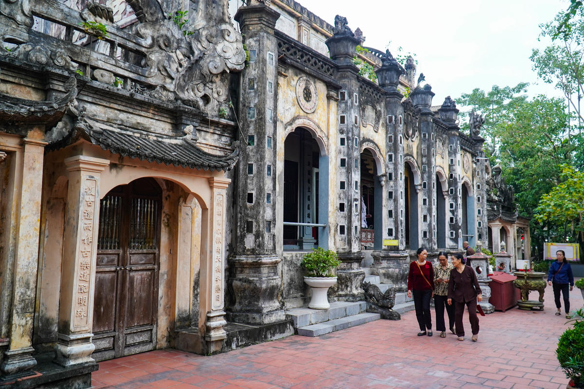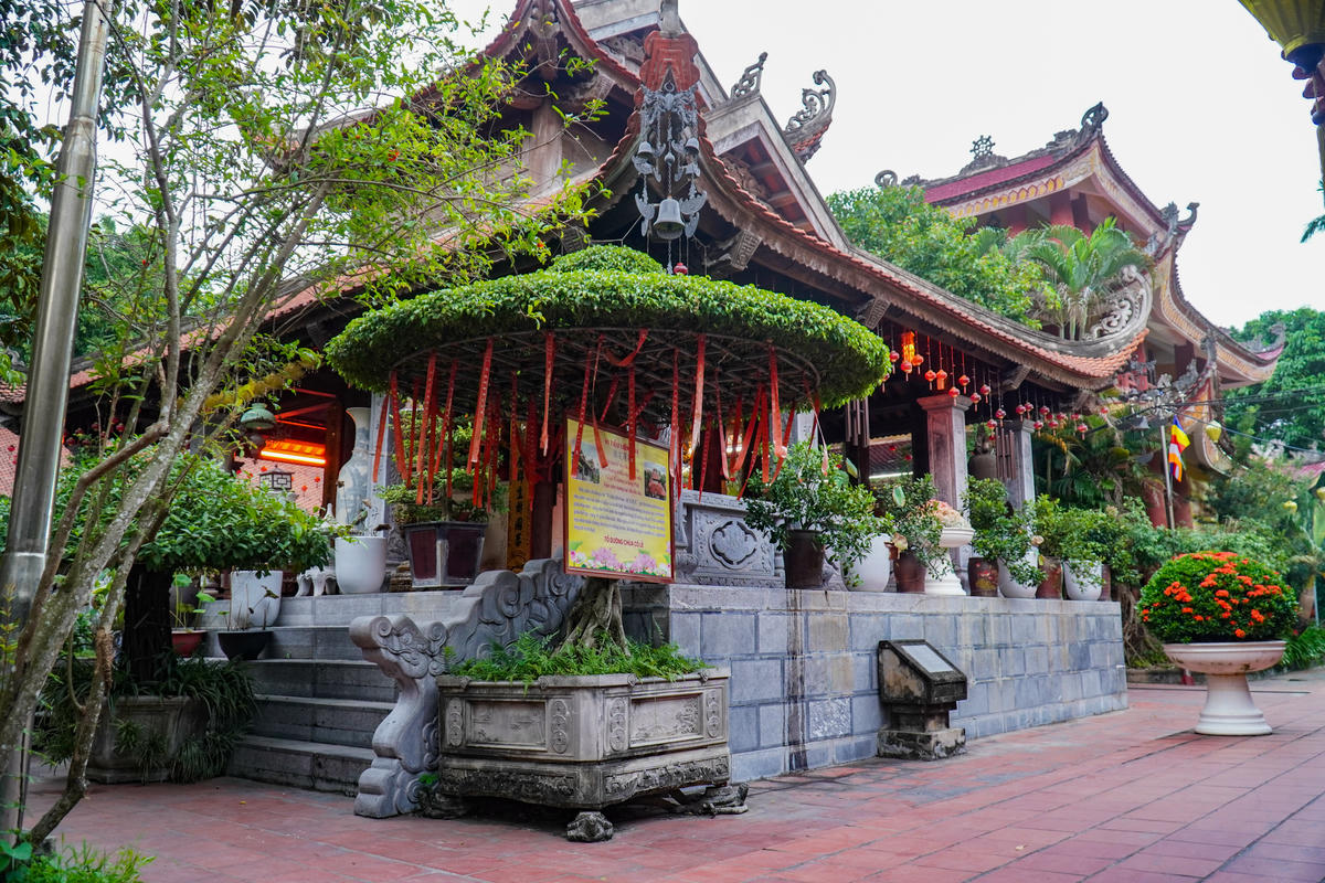 Toàn bộ bố cục chùa được sắp xếp theo trục 'tiền Phật, hậu Thánh', phản ánh đặc điểm tín ngưỡng song hành giữa đạo Phật và tín ngưỡng dân gian ở đồng bằng Bắc Bộ. Ảnh: Đình Minh