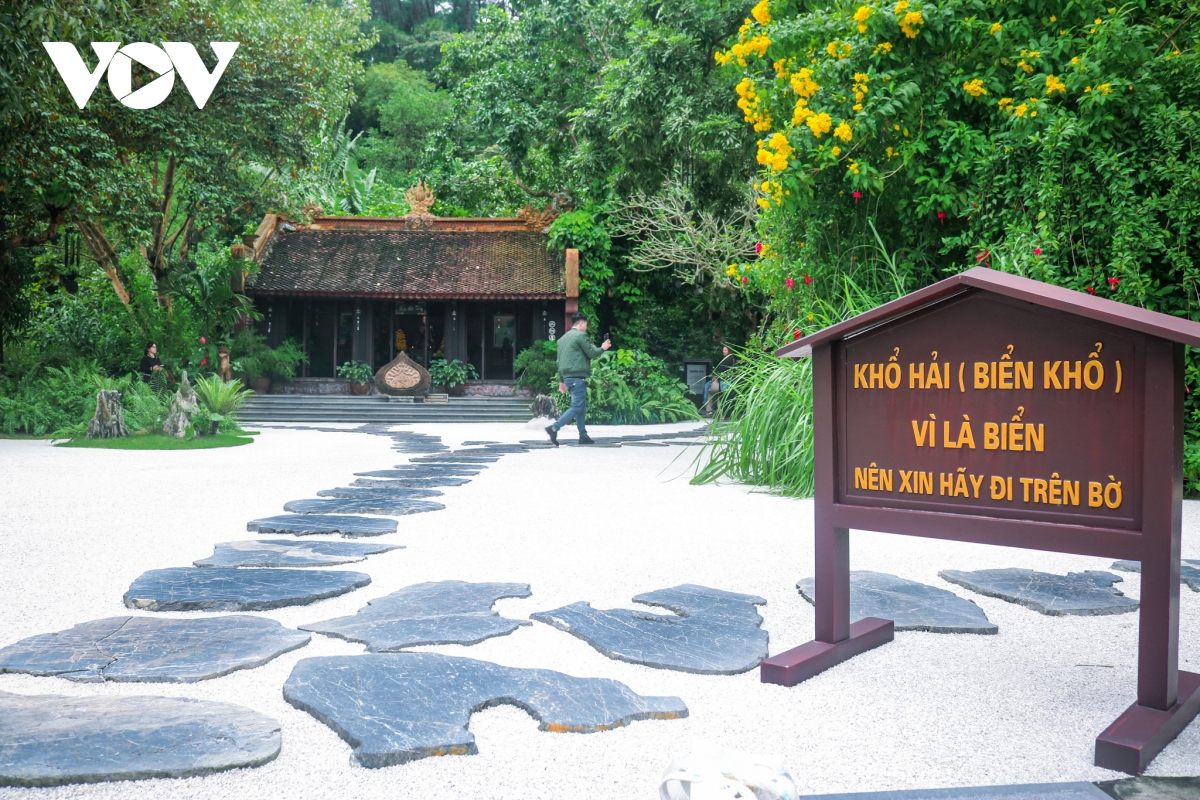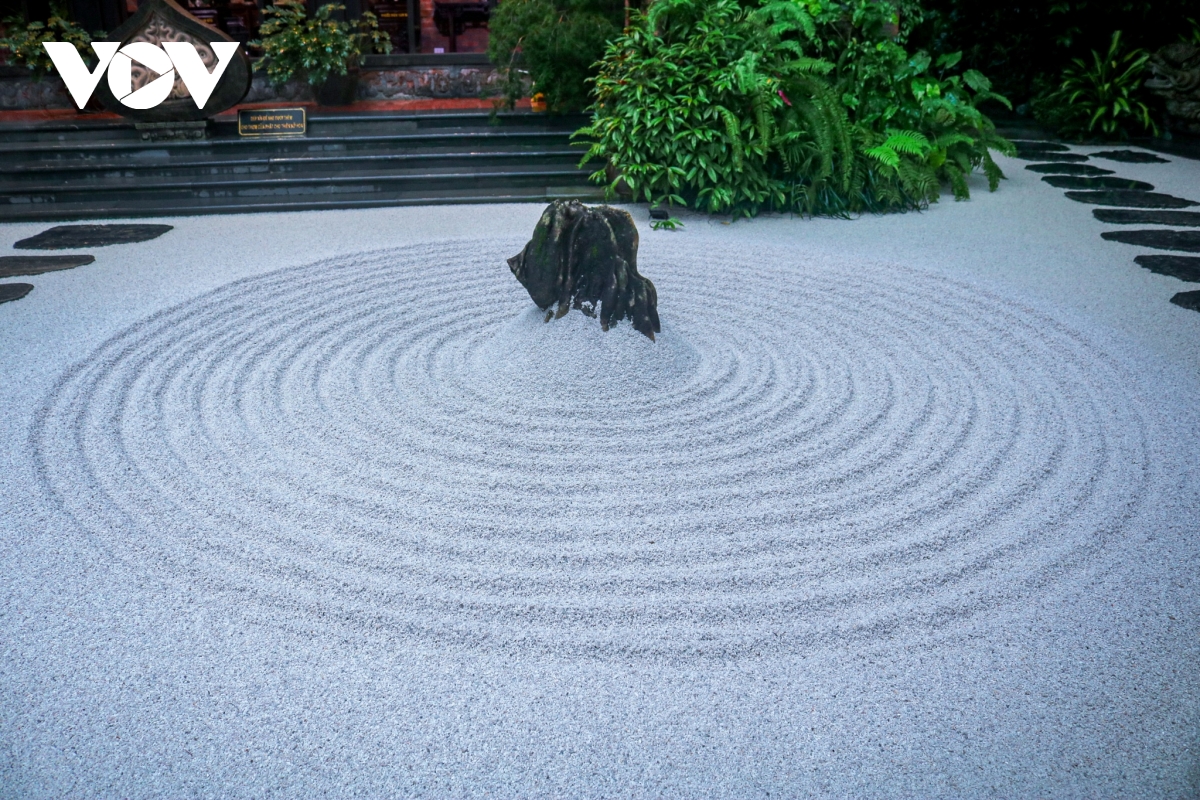Ngay trước khu Tổ đường, 12 vòng tròn được vẽ trên nền sỏi tượng trưng cho 12 nhân duyên của con người.
