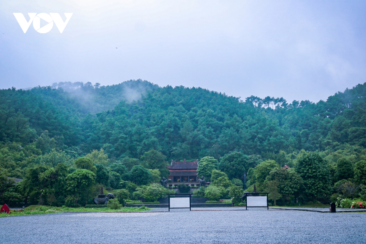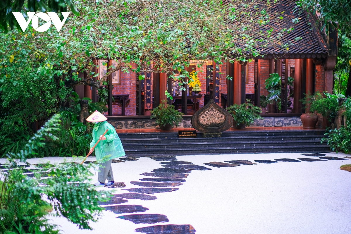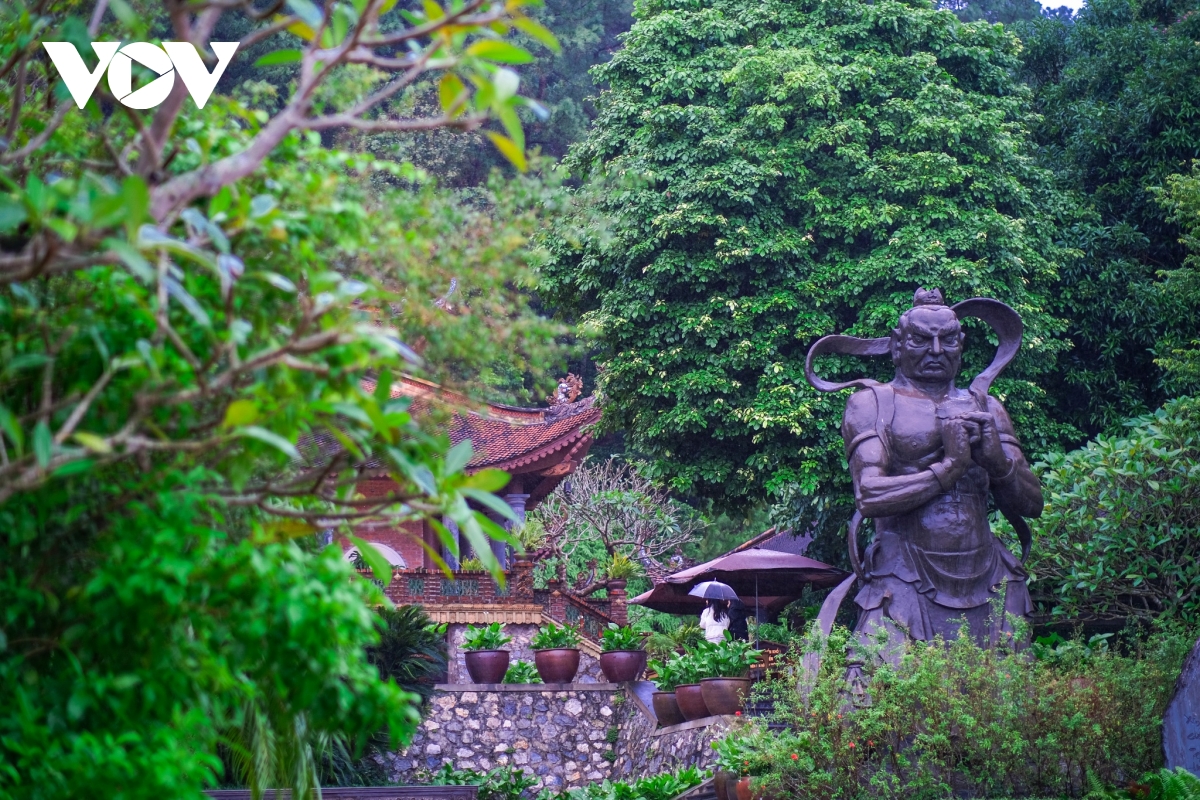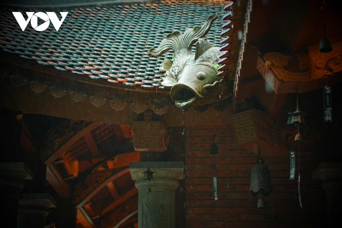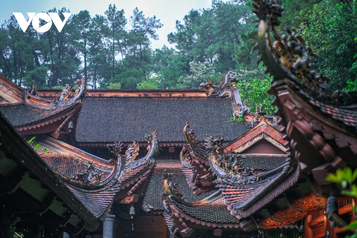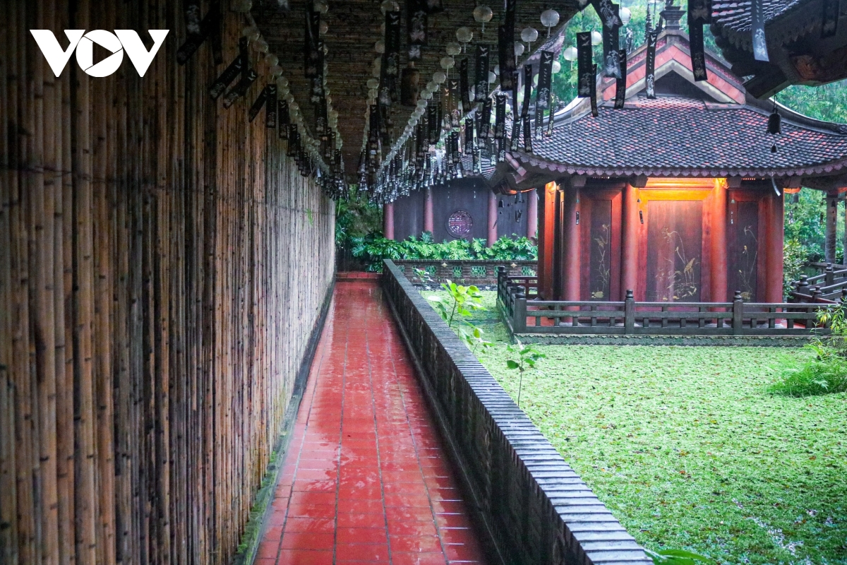 Vẻ đẹp vừa cổ kính trầm mặc, vừa nên thơ của chùa Địa Tạng Phi Lai trong một cơn mưa.