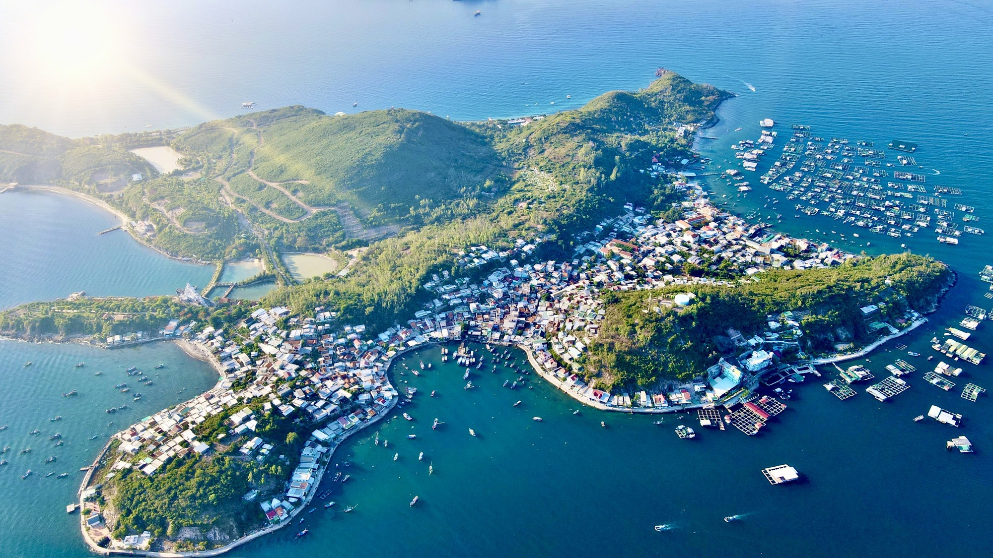 Toàn cảnh đảo Trí Nguyên (Hòn Miễu) trong Vịnh Nha Trang, khu vực được lập quy hoạch phân khu phát triển đô thị và du lịch. Ảnh: Hoàng Sơn.