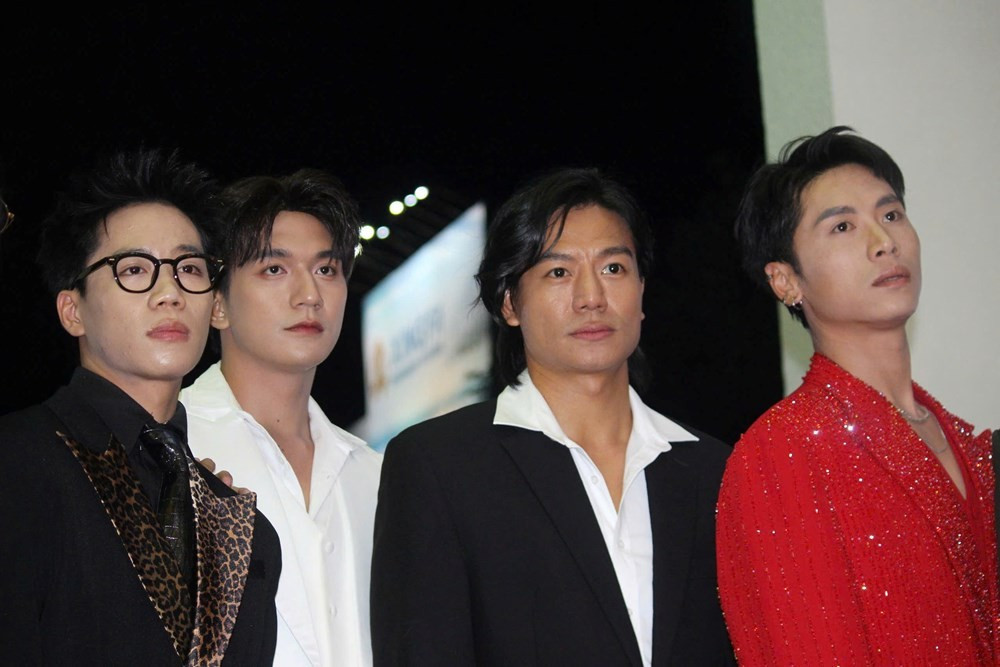 "Những người lính Mưa đỏ" gồm diễn viên Gia Huy, Đỗ Nhật Hoàng, Hiếu Nguyễn và Hoàng Long (từ trái sang) mặc chỉn chu, lịch lãm dự lễ bế mạc liên hoan phim. Ê-kíp Mưa đỏ thắng lớn khi bộ phim thắng Bông sen vàng phim truyện điện ảnh, ngoài ra còn nhận thêm giải Kỹ xảo điện ảnh xuất sắc.