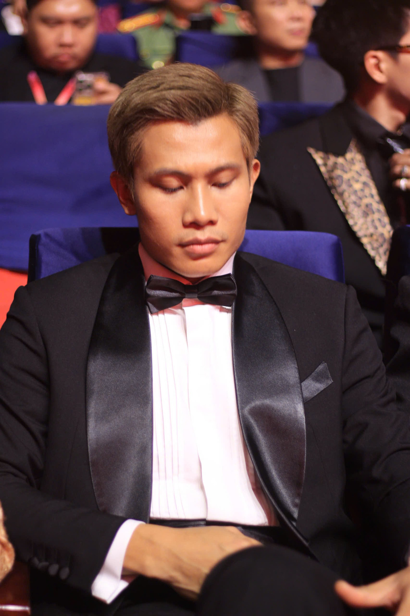 Nam diễn viên Phương Nam - người đoạt giải Nam diễn viên phụ xuất sắc với vai Tạ trong Mưa đỏ cùng diễn viên Hoàng Long hồi hộp chờ công bố giải thưởng. Mưa đỏ đại thắng mùa liên hoan phim năm nay với hạng mục Bông sen vàng phim truyện điện ảnh và hai giải cá nhân.
