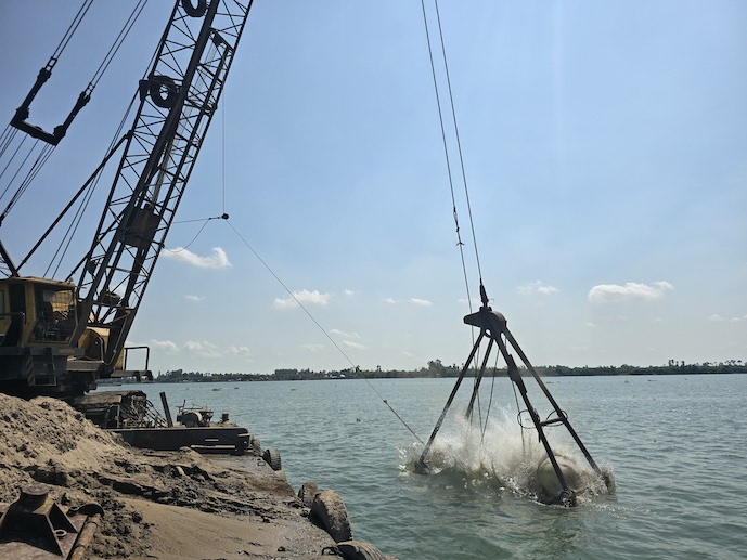 Thăm dò, lấy cát ở Đồng Tháp mở đường ra cảng Hòn Khoai. Ảnh: Trung Chánh