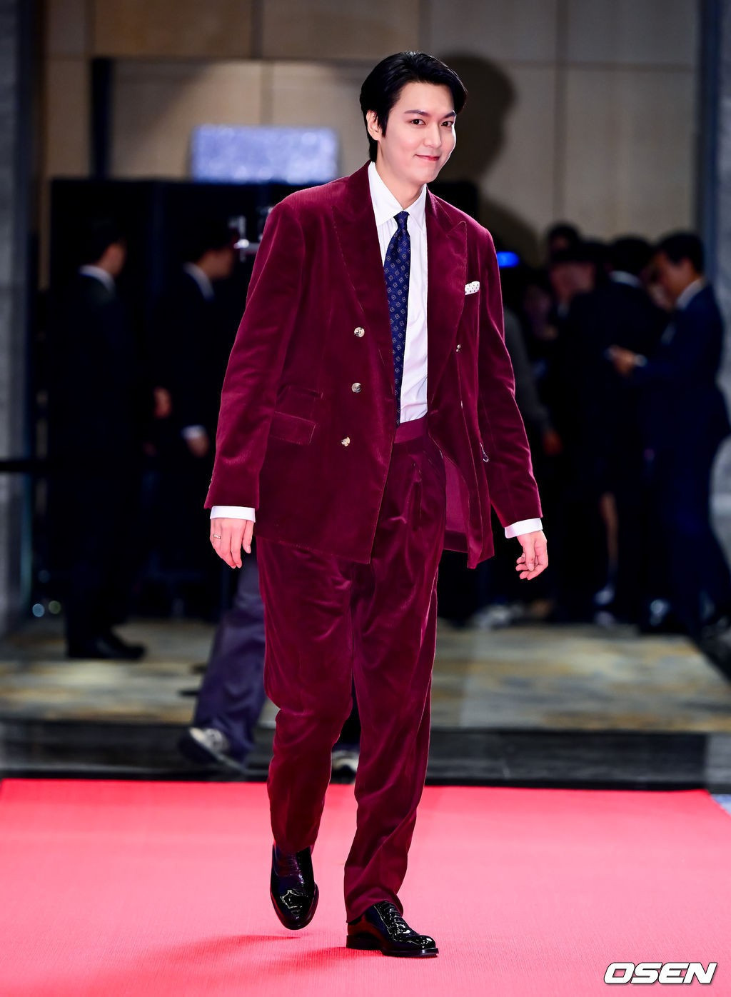 gây ấn tượng khi xuất hiện trong âu phục nhung đỏ của nhà mốt Brunello Cucinelli.