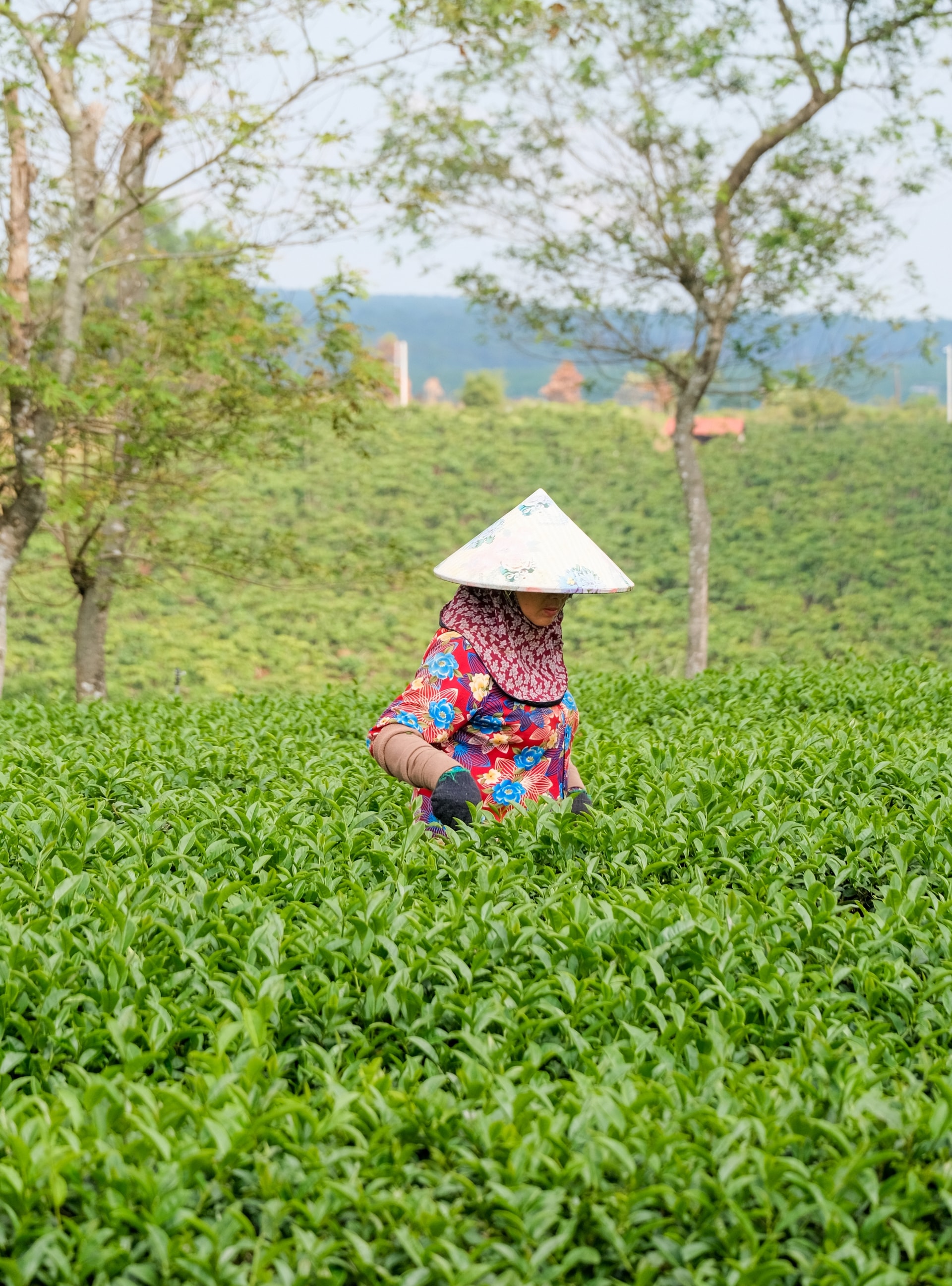 Không nhộn nhịp du khách như đồi chè Cầu Đất (phường Xuân Trường, tỉnh Lâm Đồng), đồi chè Phước Lạc có phần bình dị hơn giữa đất trời cao nguyên.