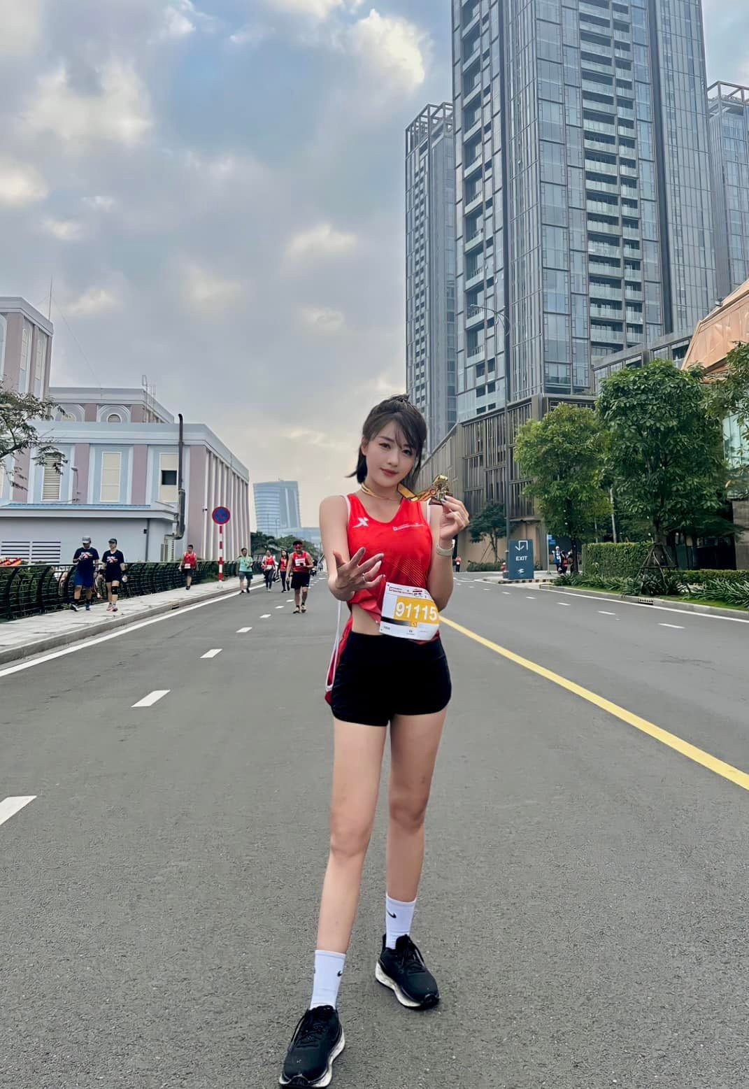 Mới đây, tại một giải chạy lớn ở Hà Nội, hot girl Hà Kim lại tiếp tục “gây bão” với loạt ảnh ghi lại khoảnh khắc cô tham gia đường chạy trong trang phục thể thao năng động.