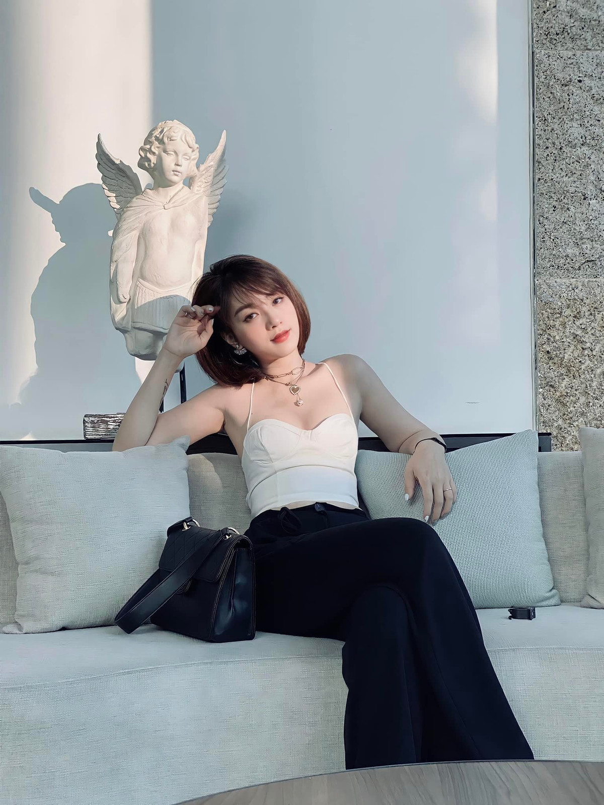 Với nụ cười rạng rỡ, mái tóc bay nhẹ theo gió và ánh nhìn tự tin, nàng hot girl 9X mang đến hình ảnh một người phụ nữ hiện đại, khỏe khoắn, năng động nhưng vẫn giữ được nét duyên dáng, mềm mại.