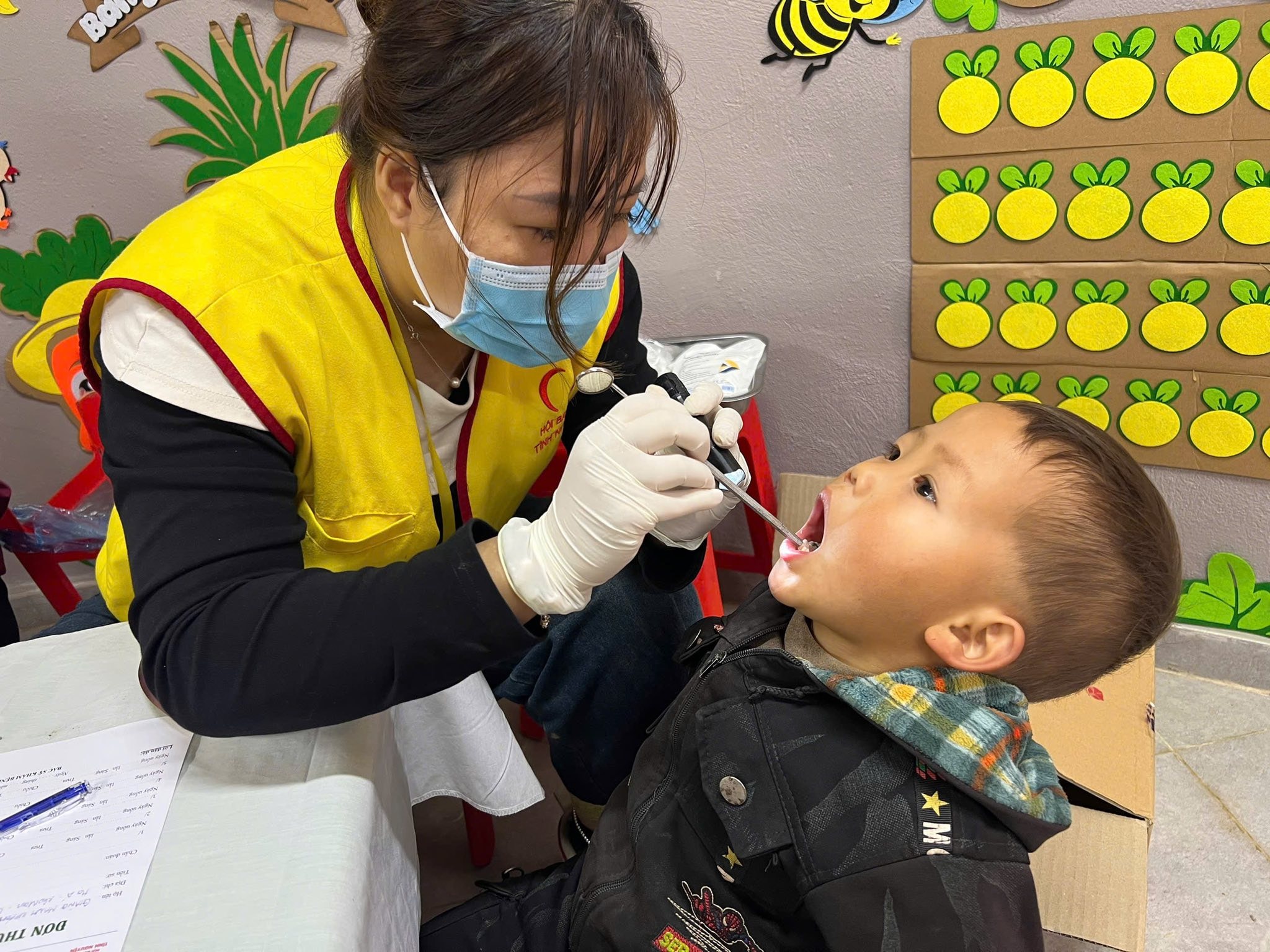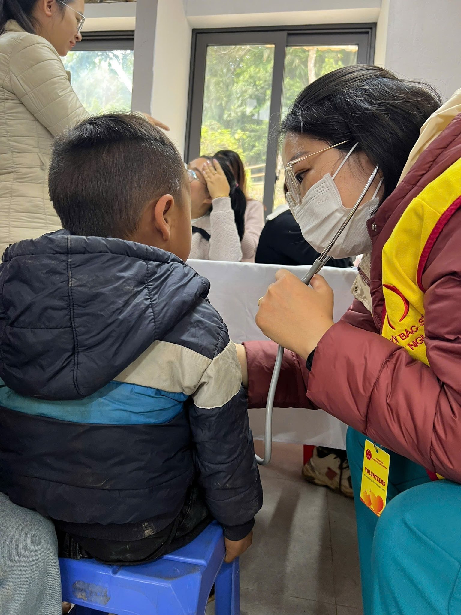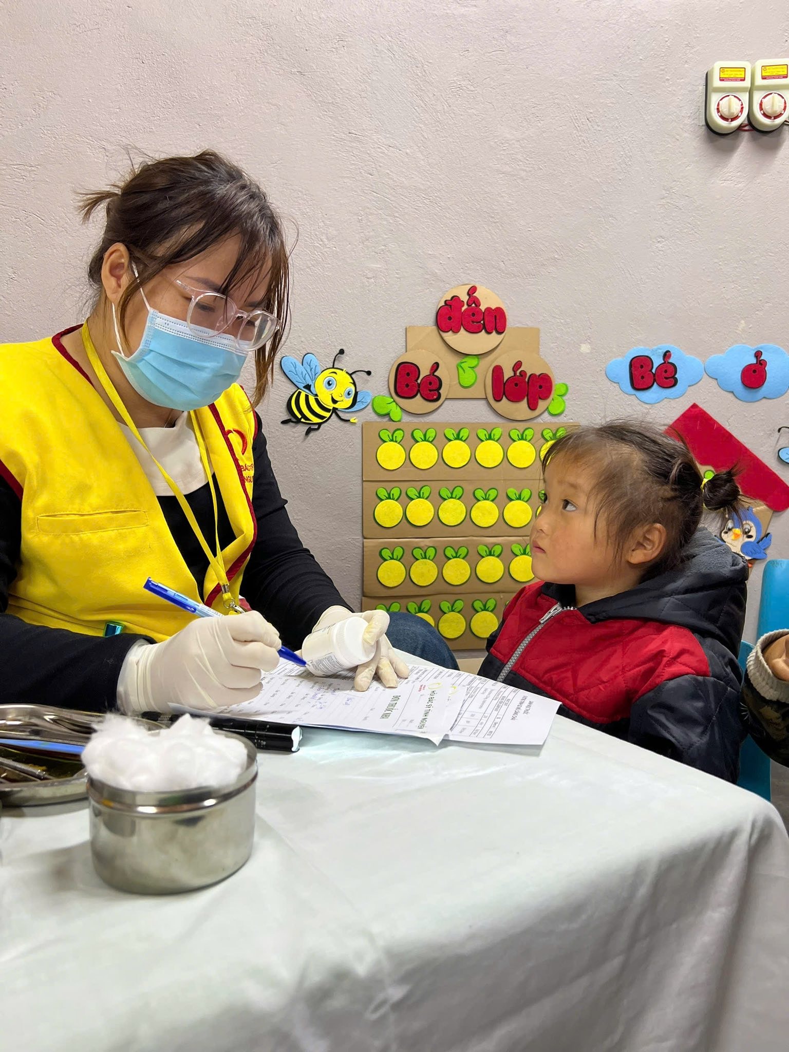 Tại điểm trường Háng Á, các em học sinh được: Khám tổng quát và sàng lọc các bệnh lý thường gặp, tư vấn chăm sóc sức khỏe và hướng dẫn vệ sinh cá nhân, phát thuốc, bổ sung dinh dưỡng cần thiết.