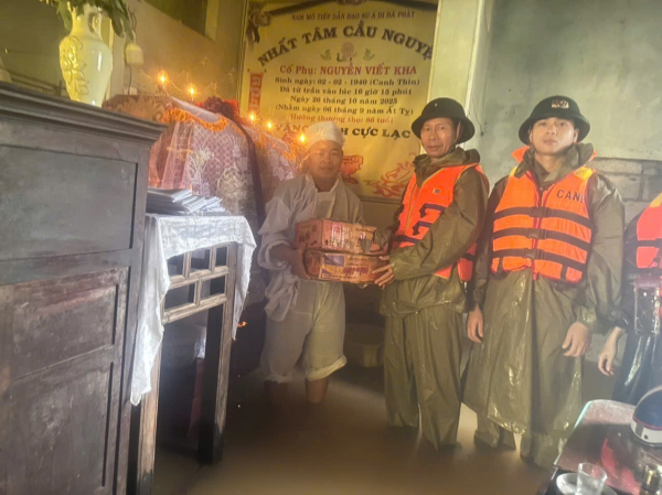 Đến cuối giờ chiều ngày 28/10, Công an TP Huế đã chủ động tham mưu chính quyền thực hiện phương án di dời, sơ tán 1.759 hộ/4.557 khẩu tại khu vực xung yếu, ngập sâu đến các điểm an toàn, có phương án bảo vệ tài sản cho người dân...; đồng thời tổ chức cấp phát hàng trăm thùng mì tôm, nước uống đóng chai và các nhu yếu phẩm cho người dân, không để người dân đói rét, nhất là ở các điểm trường, cơ sở y tế và các hộ dân ở nơi thấp trũng làm điểm tránh trú an toàn.