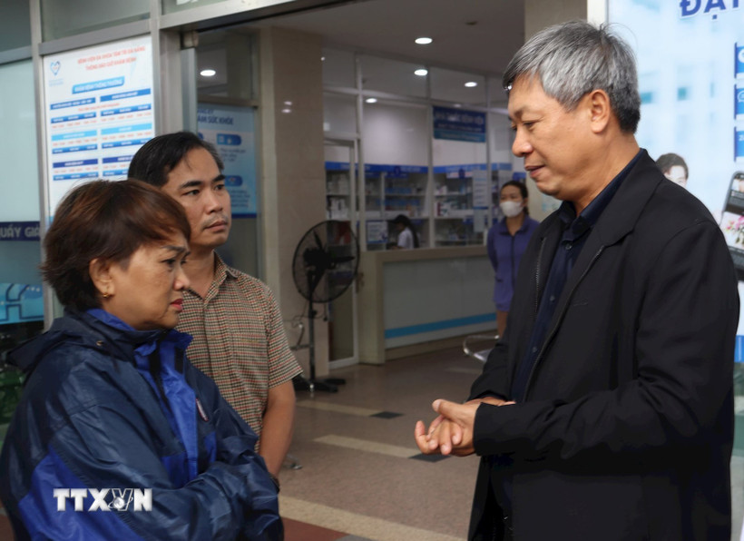 Phó Chủ tịch UBND thành phố Đà Nẵng Hồ Quang Bửu (phải) thăm, động viên các nạn nhân vụ ngạt khí tại xã Điện Bàn Tây tại Bệnh viện. (Ảnh: TTXVN phát)