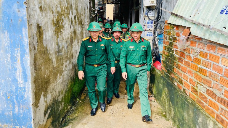 Đại tá Phan Đại Nghĩa, Phó Tư lệnh kiêm Tham mưu trưởng Quân khu 5 khảo sát nắm tình hình thiệt hại tại gia đình quân nhân có người thân thương do mưa lũ.