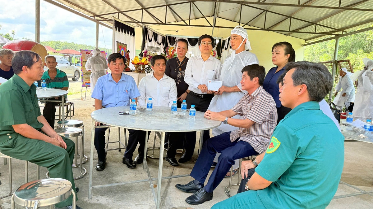 Tại lễ viếng, đoàn công tác đã ân cần động viên thân nhân nạn nhân cố gắng vượt qua nỗi đau, sớm ổn định cuộc sống.