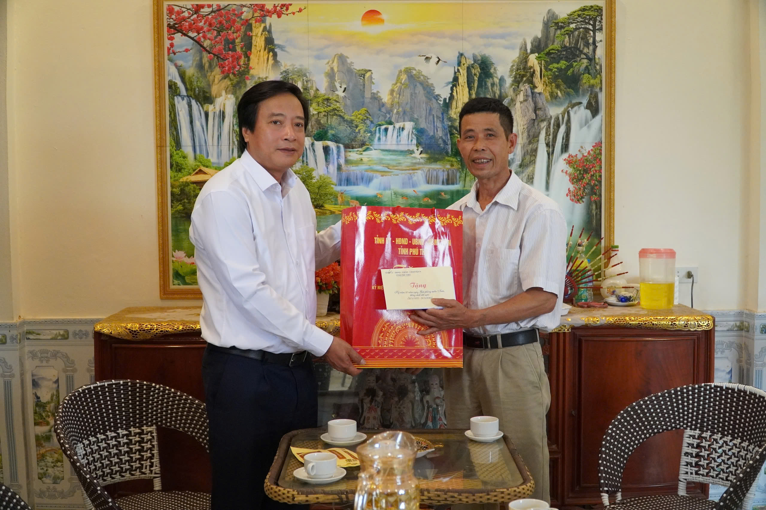 Đồng chí Phó Chủ tịch Thường trực HĐND tỉnh Nguyễn Trung Kiên thăm hỏi, tặng quà ông Nguyễn Minh Tuấn - cán bộ tiền khởi nghĩa tại xã Xuân Áng, huyện Hạ Hòa.