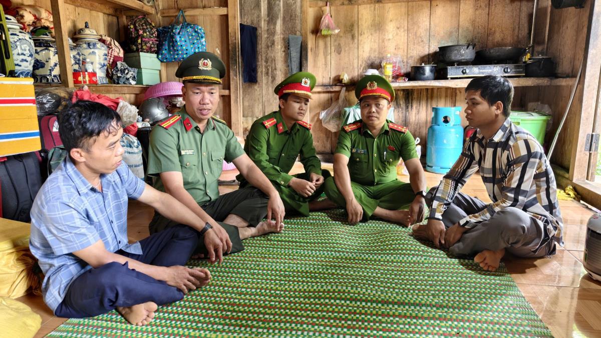 Công an xã A Vương thăm hỏi, động viên bà con nhân dân thôn Aur sau mưa lũ