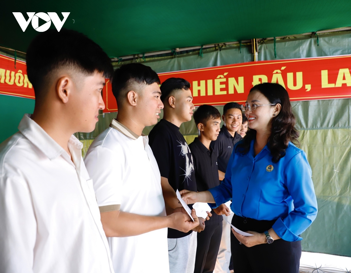 Chủ tịch Liên đoàn Lao động thành phố Cần Thơ Lê Thị Sương Mai tặng quà cho thanh niên chuẩn bị lên đường nhập ngũ năm 2026 tại phường Thới An Đông.