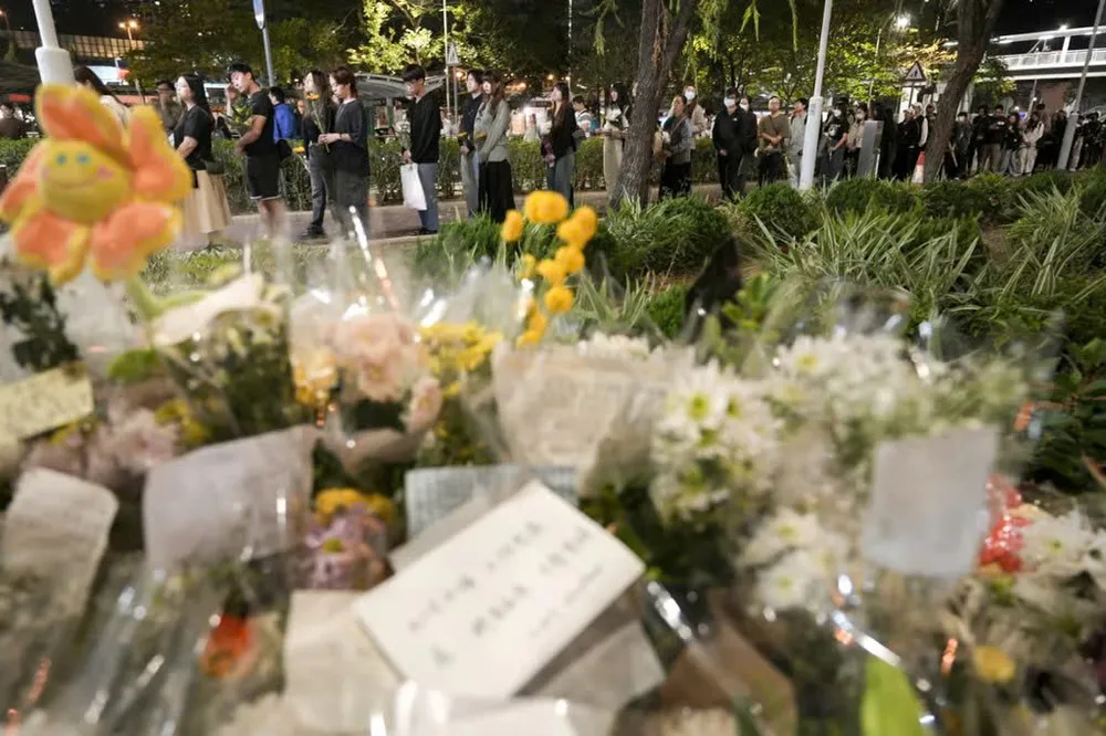 Hàng trăm cư dân xếp hàng tại khu vực Kwong Fuk Sitting-out Area để tưởng niệm những người thiệt mạng trong vụ cháy kinh hoàng. Ảnh: SCMP