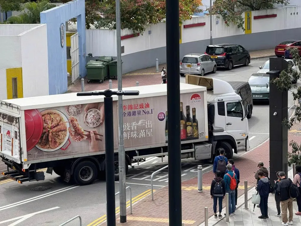 Một xe tải của công ty thực phẩm Lee Kum Kee (trụ sở tại Hong Kong) đã đến Hội trường Cộng đồng Tung Cheong Street để hỗ trợ nạn nhân. Ảnh: SCMP