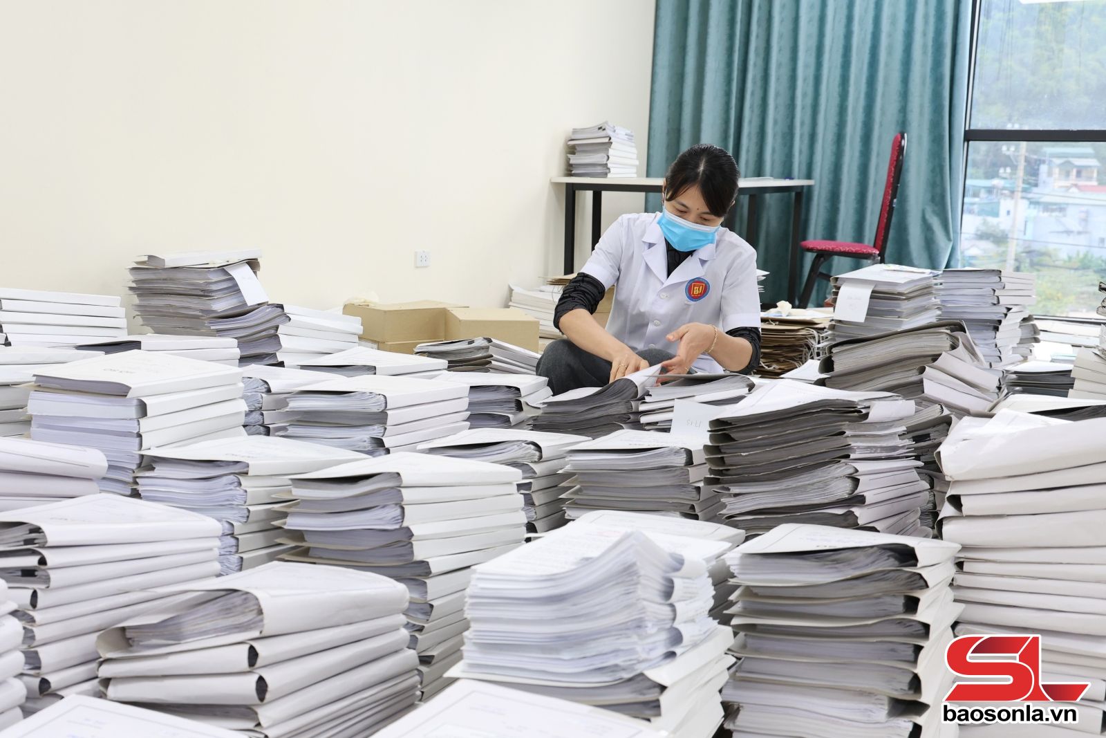 Dẫn chúng tôi thăm đơn vị, chị Khổng Thị Hữu, Phó Giám đốc phụ trách Trung tâm Lưu trữ lịch sử tỉnh, giới thiệu: Hiện nay, kho lưu trữ của trung tâm đang bảo quản 57 phông lưu trữ, trên 2.200 mét giá tài liệu với gần 80.000 hồ sơ của các cơ quan, tổ chức từ năm 1962 đến nay. Đây là khối tư liệu quan trọng, phản ánh trung thực đời sống chính trị, kinh tế, văn hóa, xã hội của Sơn La qua nhiều thời kỳ. Những hồ sơ được đưa vào lưu trữ ở trung tâm thuộc loại tài liệu có giá trị lưu trữ vĩnh viễn. Mỗi năm, trung tâm tiếp nhận hàng trăm bộ tài liệu từ các đơn vị chuyển về để chỉnh lý, lưu trữ. Trong quá trình chỉnh lý, có rất nhiều hồ sơ phải làm vệ sinh, thực hiện việc bồi nền cho các tờ giấy có tình trạng không tốt. Do tính chất công việc yêu cầu tỉ mỉ, cẩn thận nên hầu hết nhân viên của trung tâm đều là nữ.
