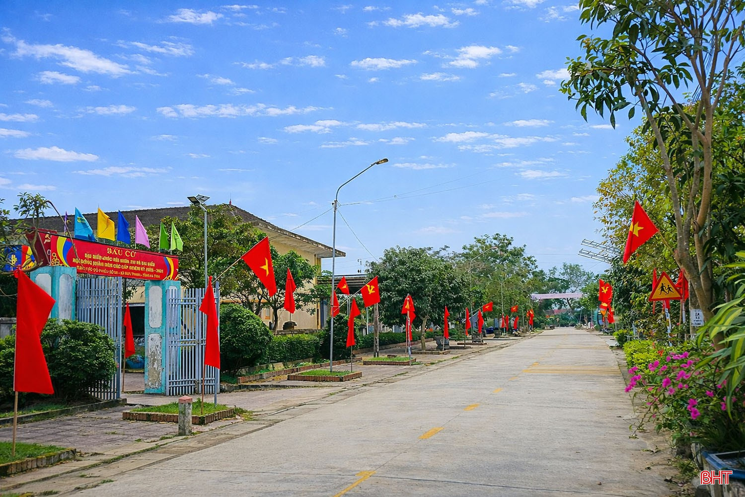 Phát huy truyền thống văn hóa ông cha, ngày nay Nhân dân làng Trung Lễ không ngừng nỗ lực phấn đấu xây dựng quê hương. Từ năm 2020, 5/5 thôn đã về đích khu dân cư nông thôn mới kiểu mẫu. Ảnh: Một góc thôn Trung Khánh (xã Đức Thịnh) rực rỡ cờ hoa chào mừng bầu cử ĐBQH khóa XVI và đại biểu HĐND các cấp, nhiệm kỳ 2026-2031.