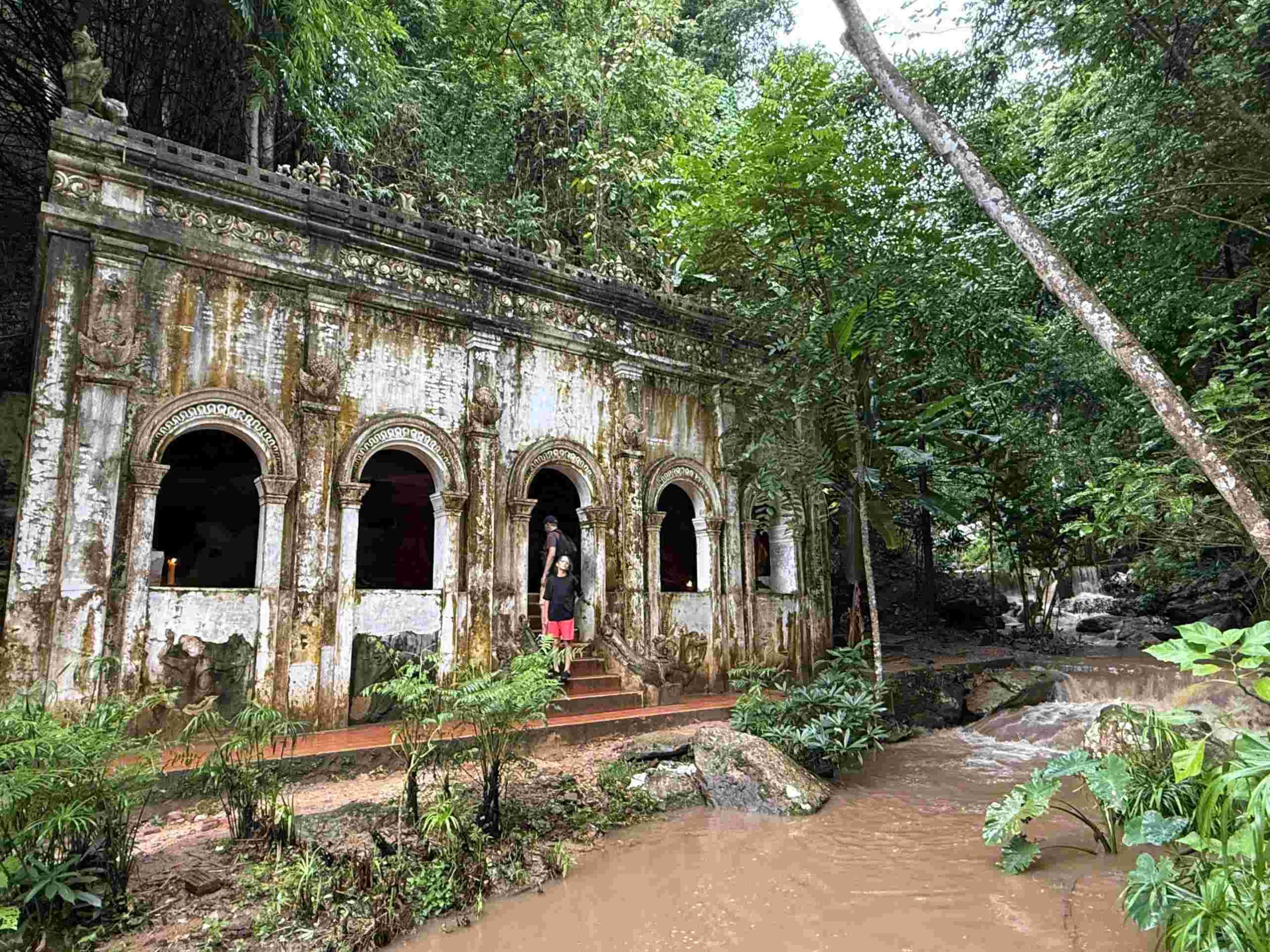 Wat Pha Lat gồm hai khu kiến trúc tách biệt bởi một thác nước. Một trong số đó là gian Hor Pracha nhỏ, nơi lưu giữ một vài tượng Phật cổ. Ảnh: Ryan Nguyễn