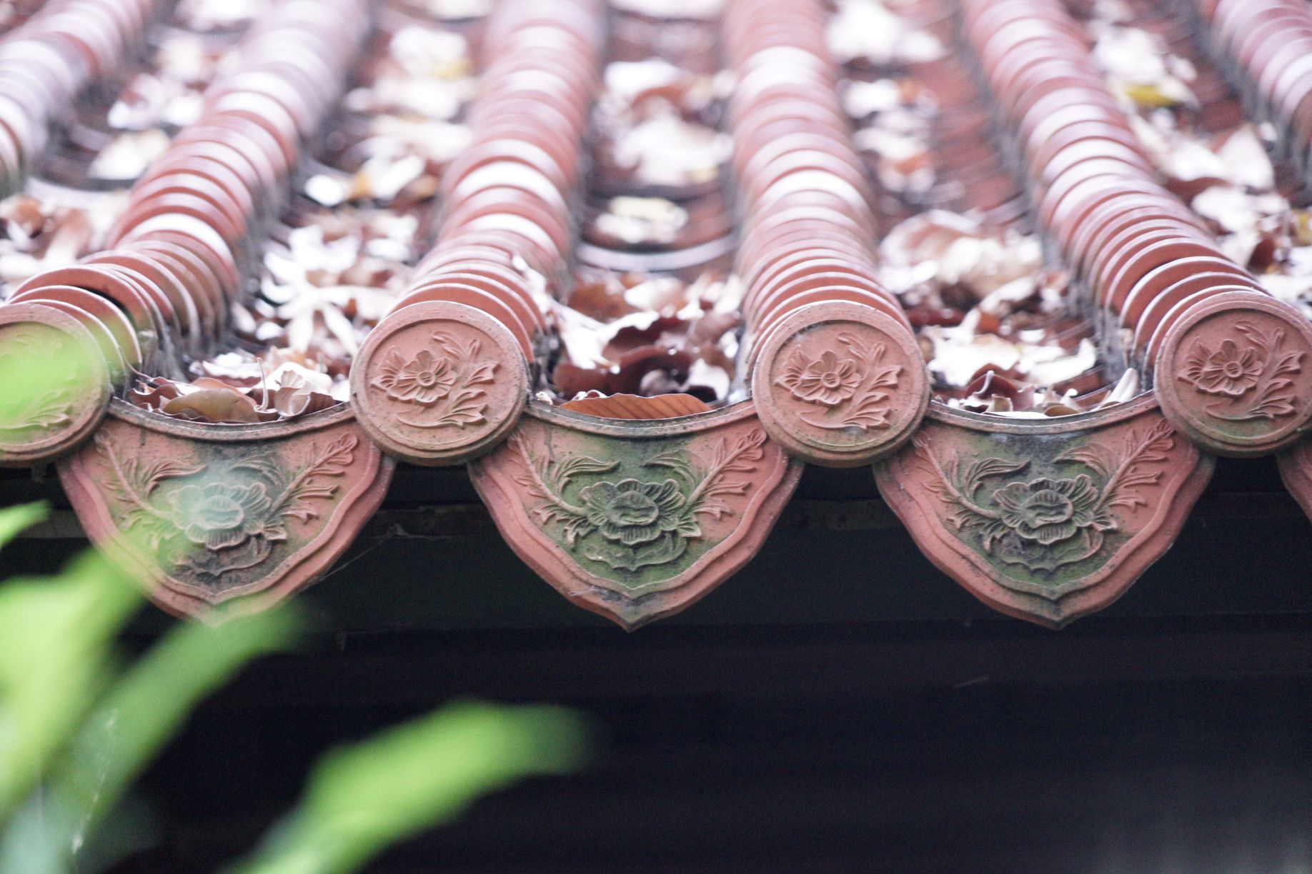 Mái được lợp ngói âm dương với những họa tiết hoa văn viền tinh xảo. Ảnh: Ngọc Khuyến